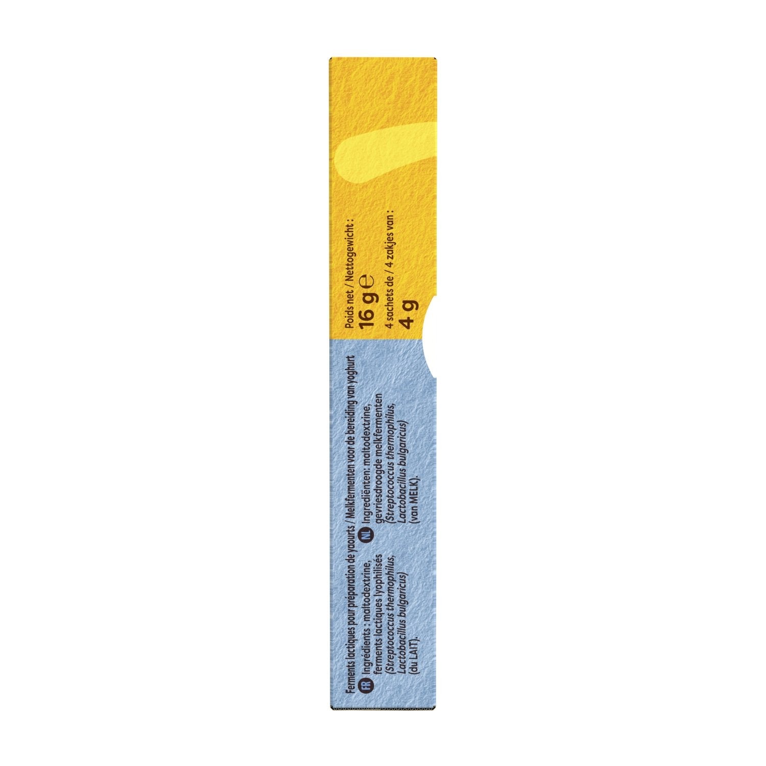 Zutaten: Maltodextrin, gefriergetrocknete Milchsäurebakterien (Streptococcus thermophilus, Lactobacillus bulgaricus) (aus MILCH)