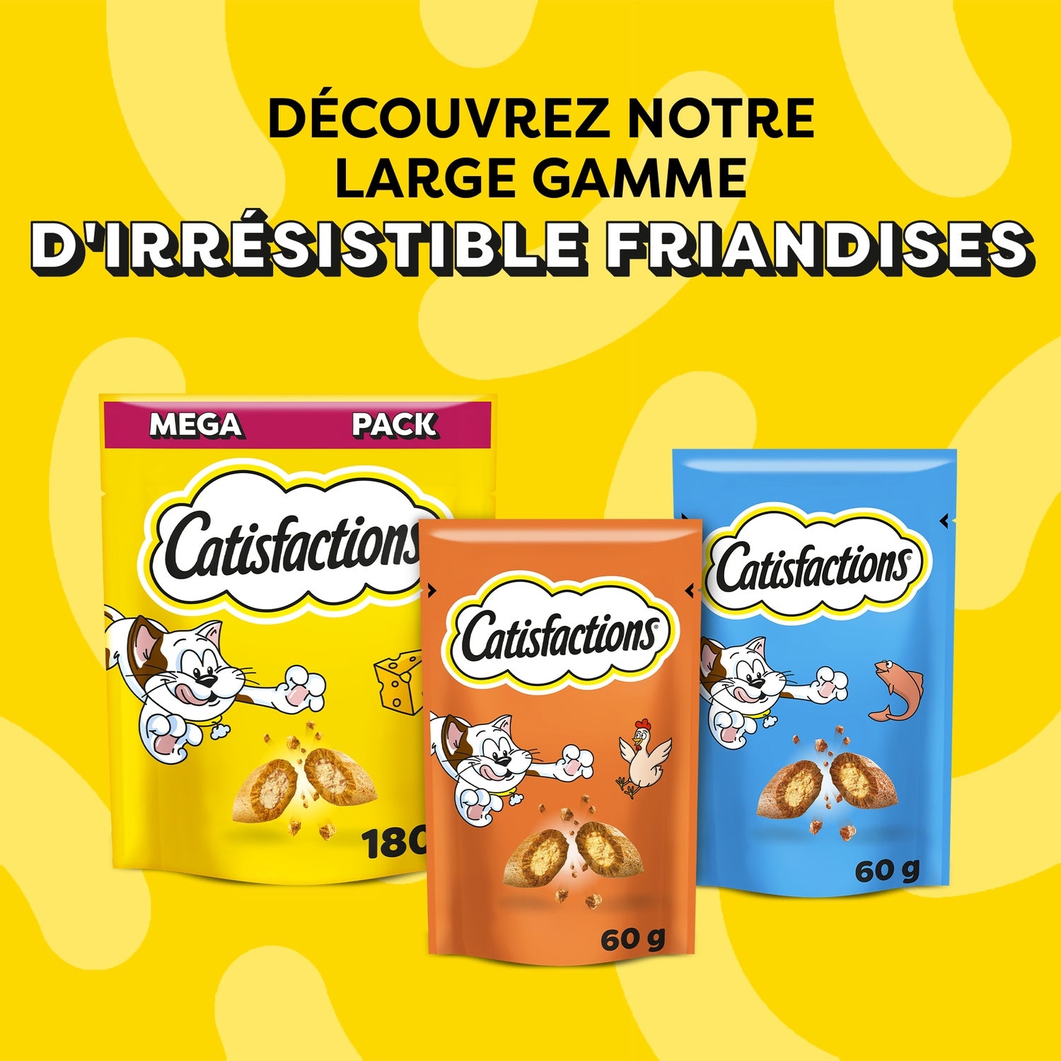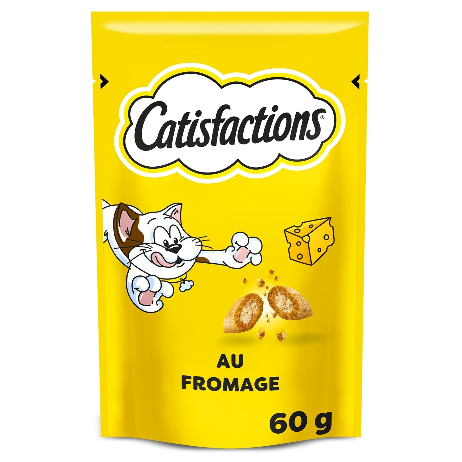 Catisfactions™ Cheese Cat Treats sind in einem wiederverschließbaren 60-g-Beutel für eine längere Haltbarkeit erhältlich.