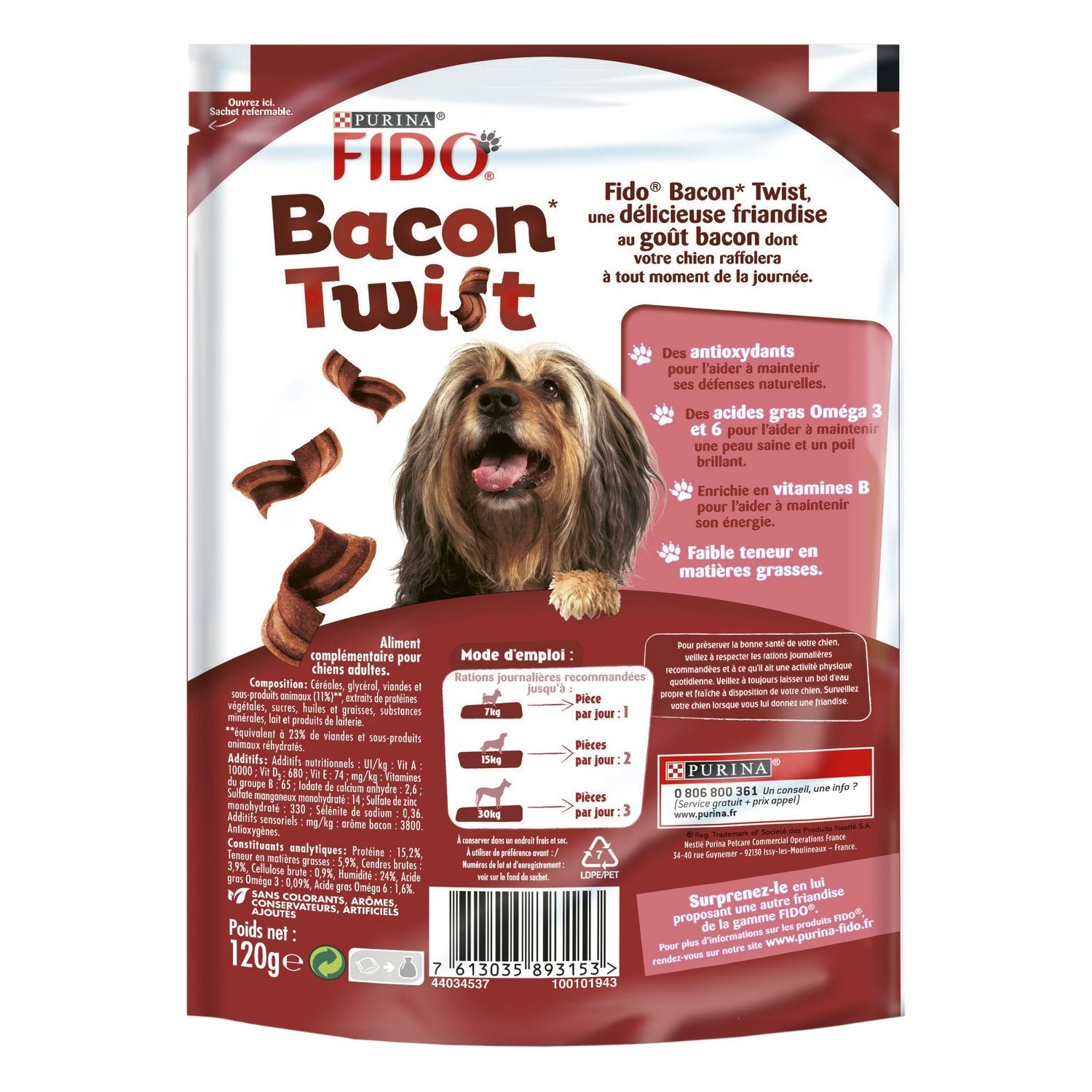 Fido Bacon Twist, ein köstlicher Leckerbissen mit Speckgeschmack, den Ihr Hund zu jeder Tageszeit lieben wird. Antioxidantien unterstützen die natürlichen Abwehrkräfte. Omega-3- und Omega-6-Fettsäuren sorgen für gesunde Haut und glänzendes Fell. Angereichert mit B-Vitaminen für mehr Energie. Fettarm. Gönnen Sie sich auch unsere anderen FIDO-Leckereien. Weitere Informationen zu FIDO-Produkten finden Sie unter www.purina-fido.fr