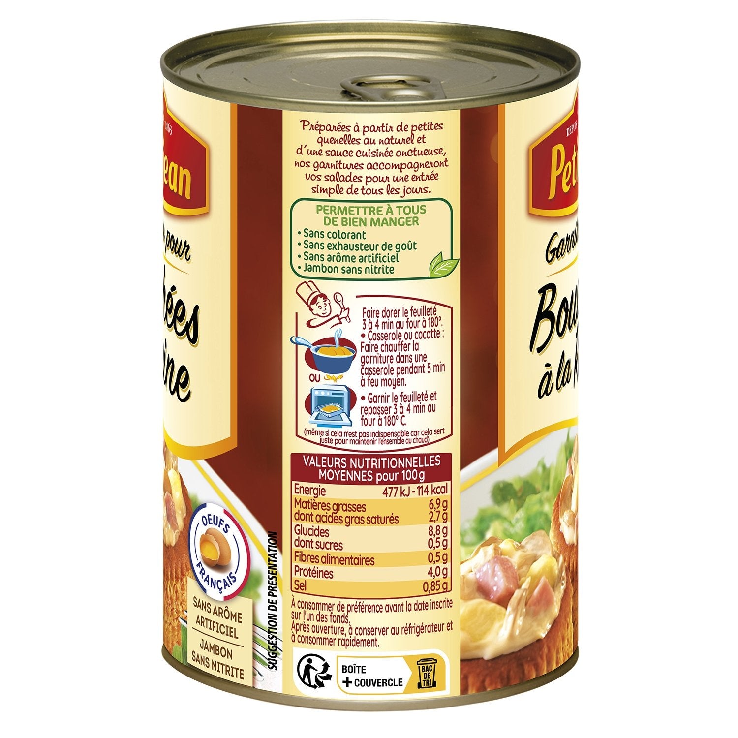 Zutaten: Wasser, kleine vorgegarte Geflügelklößchen 26 % (Schweinefett, WEIZENmehl, Wasser, Putenfleisch 3 %, EIWEISS, VOLLEI, Salz), gekochte Schinkenwürfel 10 % Schweineschinken, Wasser, Salz, Glukosesirup, Dextrose, natürliche Aromen (enthält von Natur aus Polyphenole), Antioxidationsmittel: Ascorbinsäure, Champignons 5,5 %, SAHNE (Stabilisator: Carrageen), modifizierte Stärken, Stärke, WEIZENmehl, natürliches Aroma, Sonnenblumenöl, Glukosesirup, Salz, Gewürzextrakte. Geflügel- und Schweinefleisch aus der Europäischen Union.