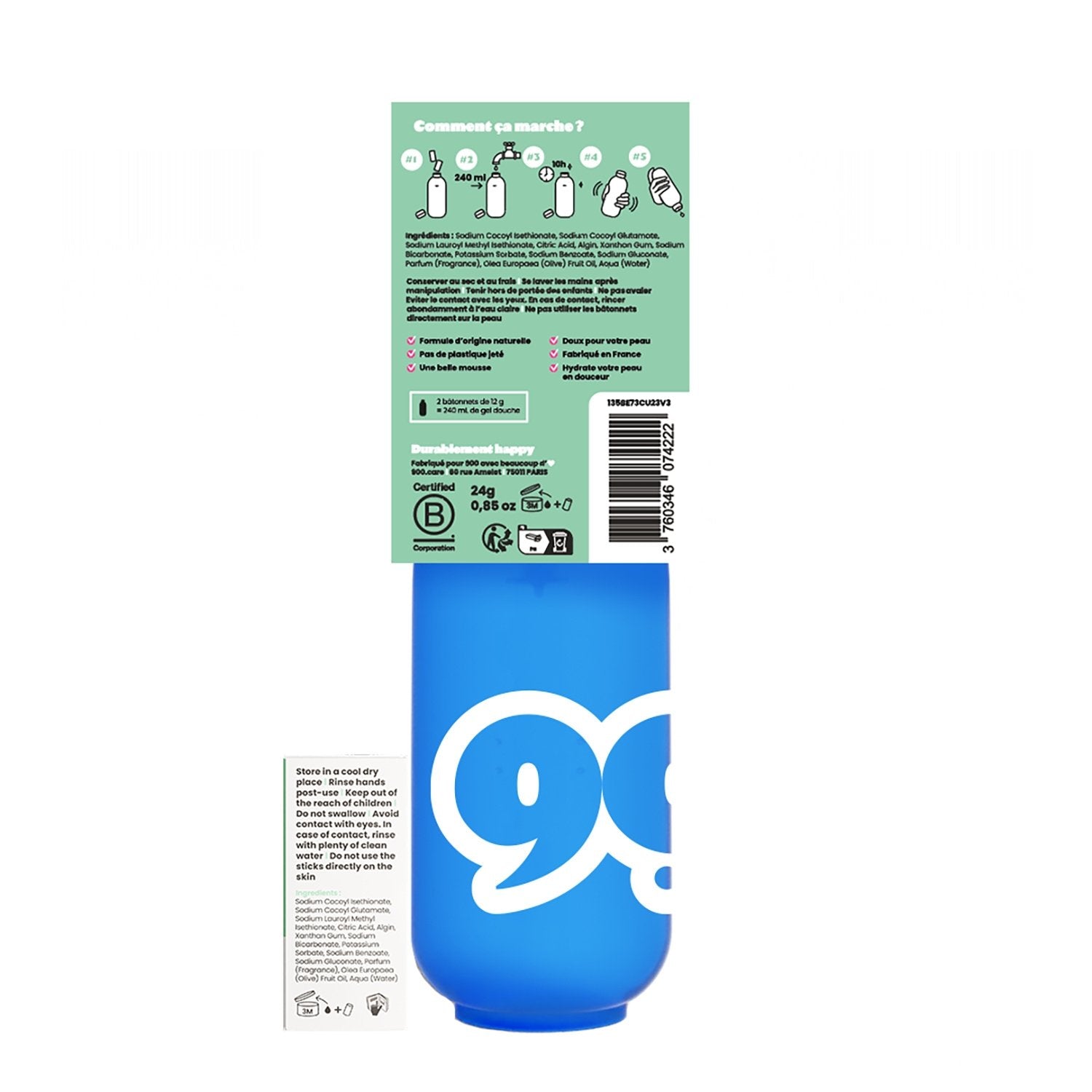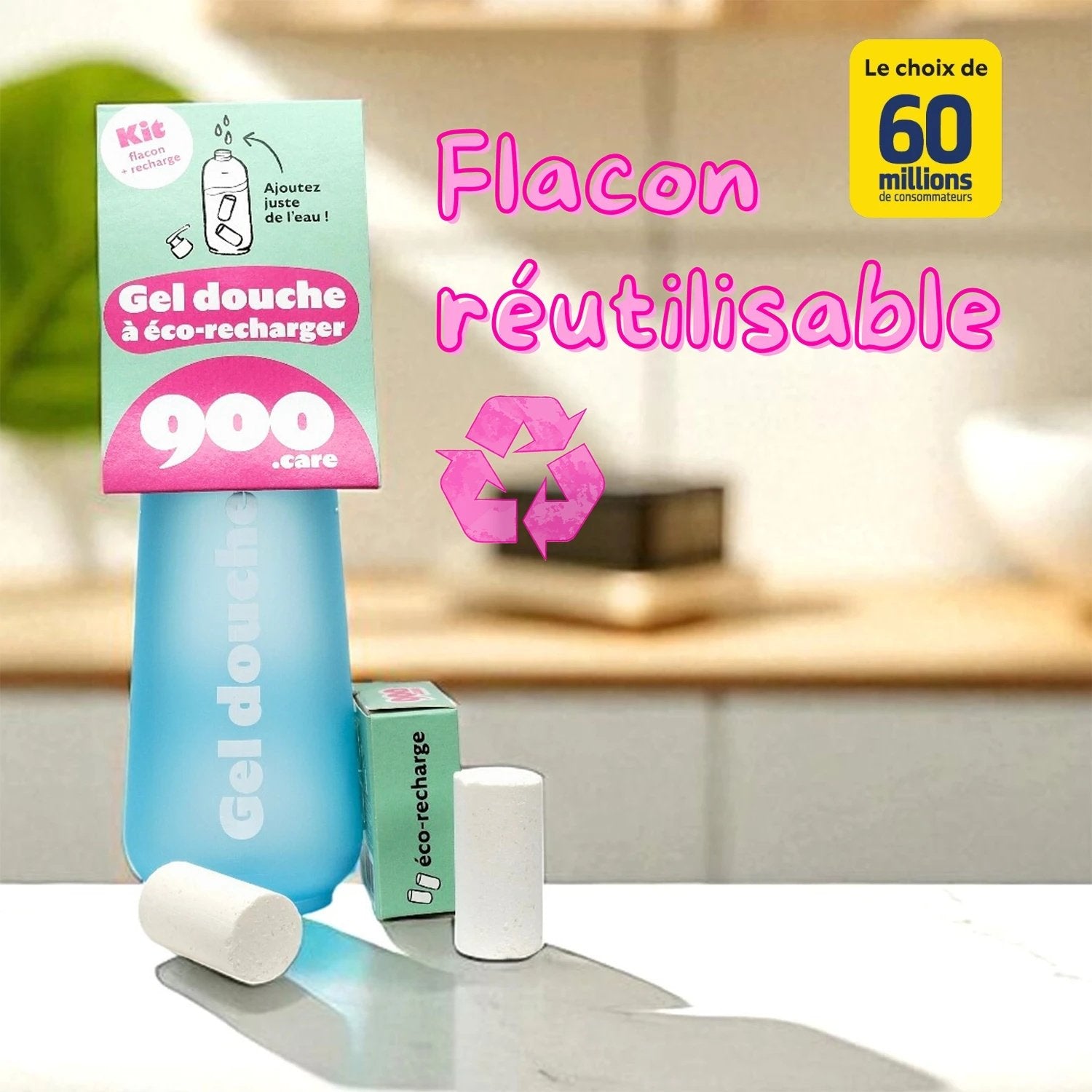 900.care erfindet Duschgel neu – mit einem nachfüllbaren Set, das einfach zuzubereiten und besonders angenehm in der Anwendung ist. Es besteht zu 98 % aus natürlichen Inhaltsstoffen, wird in Frankreich hergestellt und ist dermatologisch getestet. Es ist für die ganze Familie geeignet, auch für Menschen mit empfindlicher Haut. Von 60 Millionen Verbrauchern zum besten Duschgel gewählt
