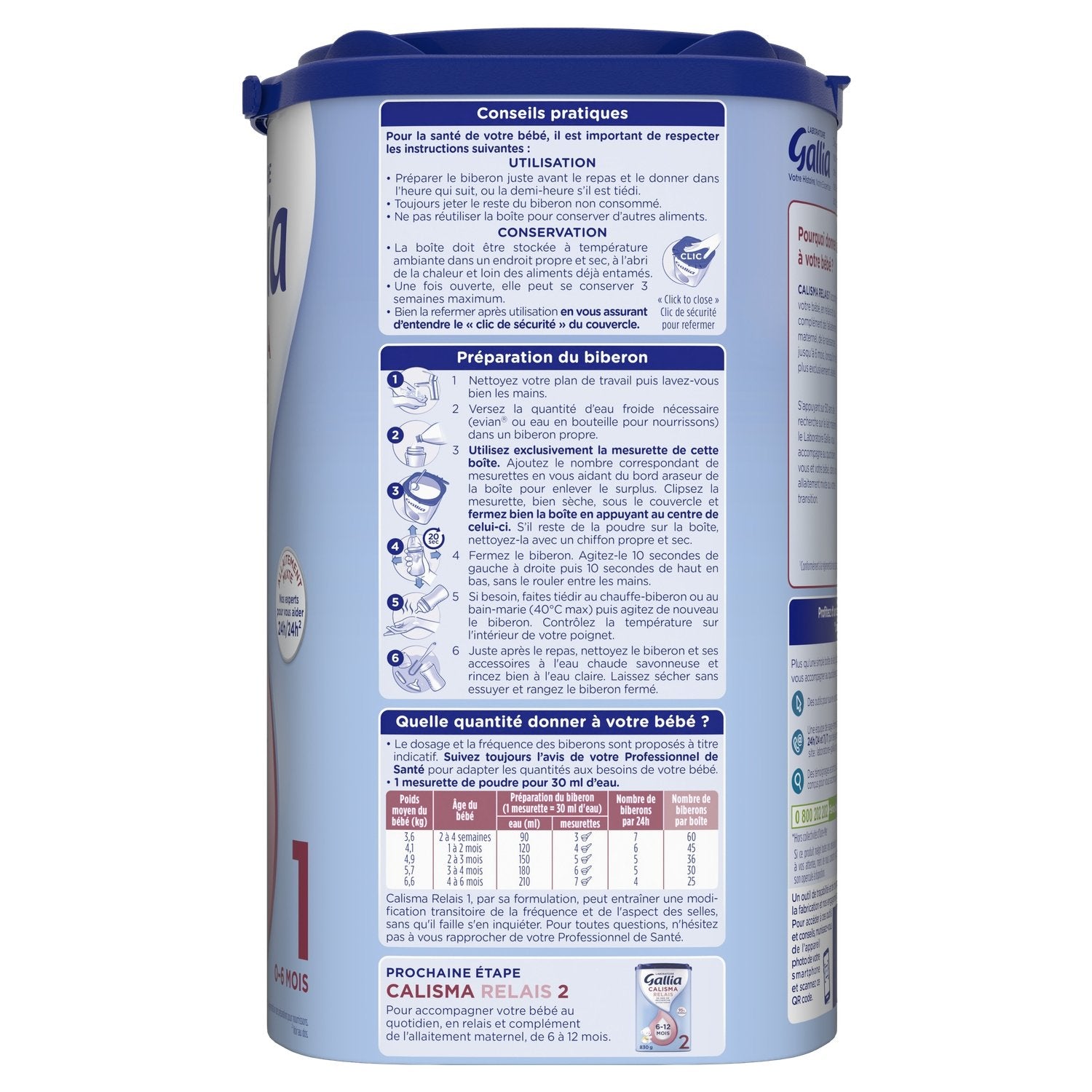GALLIA CALISMA RELAIS 1. Lebensjahr 830 g Von 0 bis 6 Monaten, eine einzigartige Kombination von Zutaten einschließlich DHA (Omega 3) (In Übereinstimmung mit den Vorschriften für Säuglingsanfangsnahrung.), PALMÖLFREI, Eine praktische und wiederverschließbare Box
