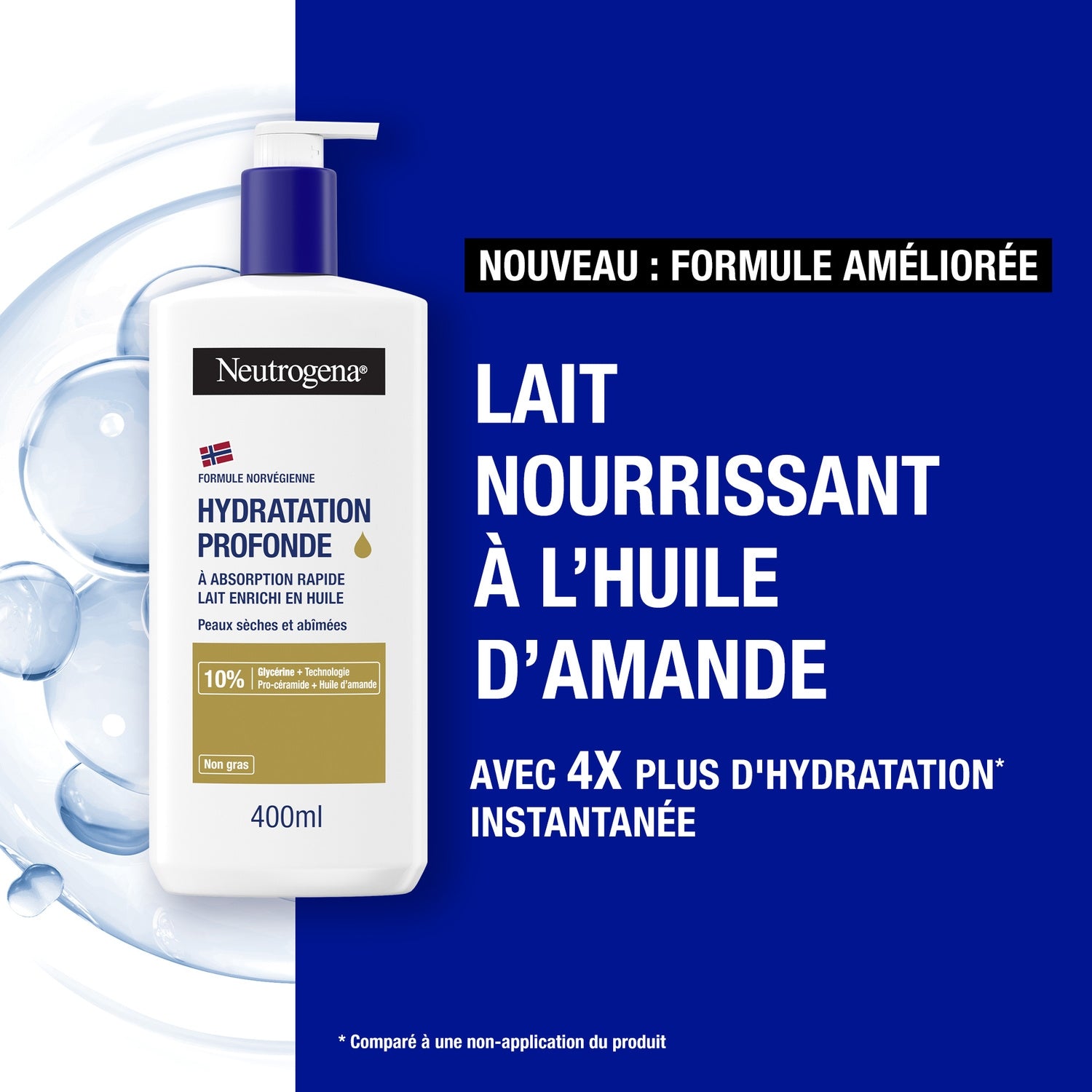 Die Neutrogena Deep Moisture Oil-Enriched Lotion wurde speziell für sehr trockene Haut entwickelt. Die einzigartige norwegische Formel ist mit Glycerin für feuchtigkeitsspendende Wirkung und Ölen für pflegende Wirkung angereichert. Sie kombiniert die 48-Stunden-Feuchtigkeitsversorgung und die sofortige Absorption einer Lotion mit dem weichen, seidigen Finish eines Öls. Die leichte, nicht fettende Textur schmilzt bei Hautkontakt und zieht sofort ein, sodass Sie sich direkt nach dem Auftragen anziehen können. Die Haut ist weich, gepflegt und strahlend.