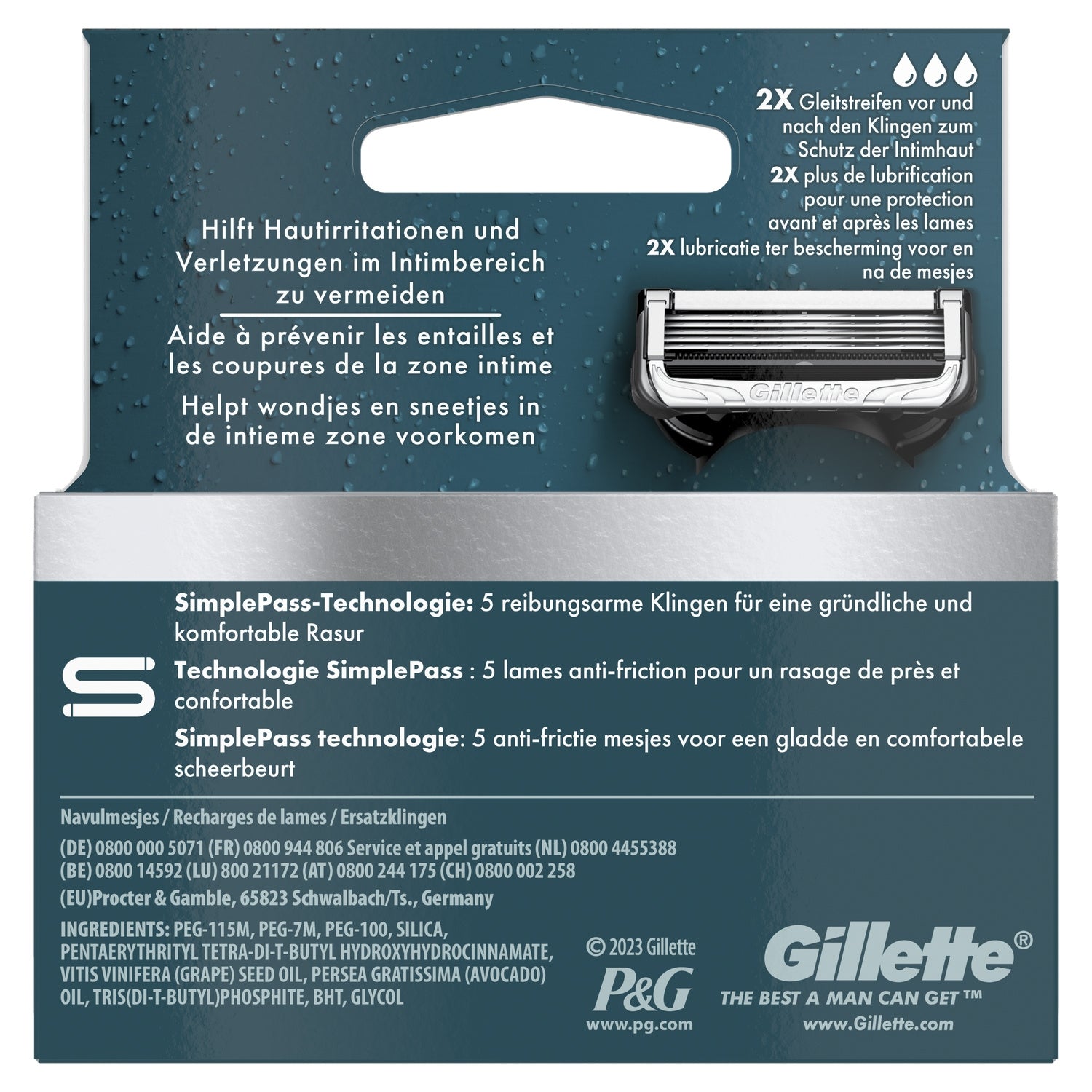 Die Gillette Intimrasierer-Nachfüllklingen sind für eine sanfte Rasur im Intimbereich mit minimalen Schnittverletzungen konzipiert. Die SimplePass-Technologie mit 5 Anti-Reibungsklingen sorgt für eine gründliche, sanfte Rasur im empfindlichen Schambereich. Die Klingen-Nachfüllklingen sind dermatologisch getestet und bieten dank des Gleitstreifens auf Vorder- und Rückseite der Klingen verbesserte Gleitfähigkeit und Komfort. Nutzen Sie die gesamte Gillette Intimpflegeserie, um Ihre Haut vor Rasurreizungen zu schützen und Ihren Intimbereich zu pflegen.