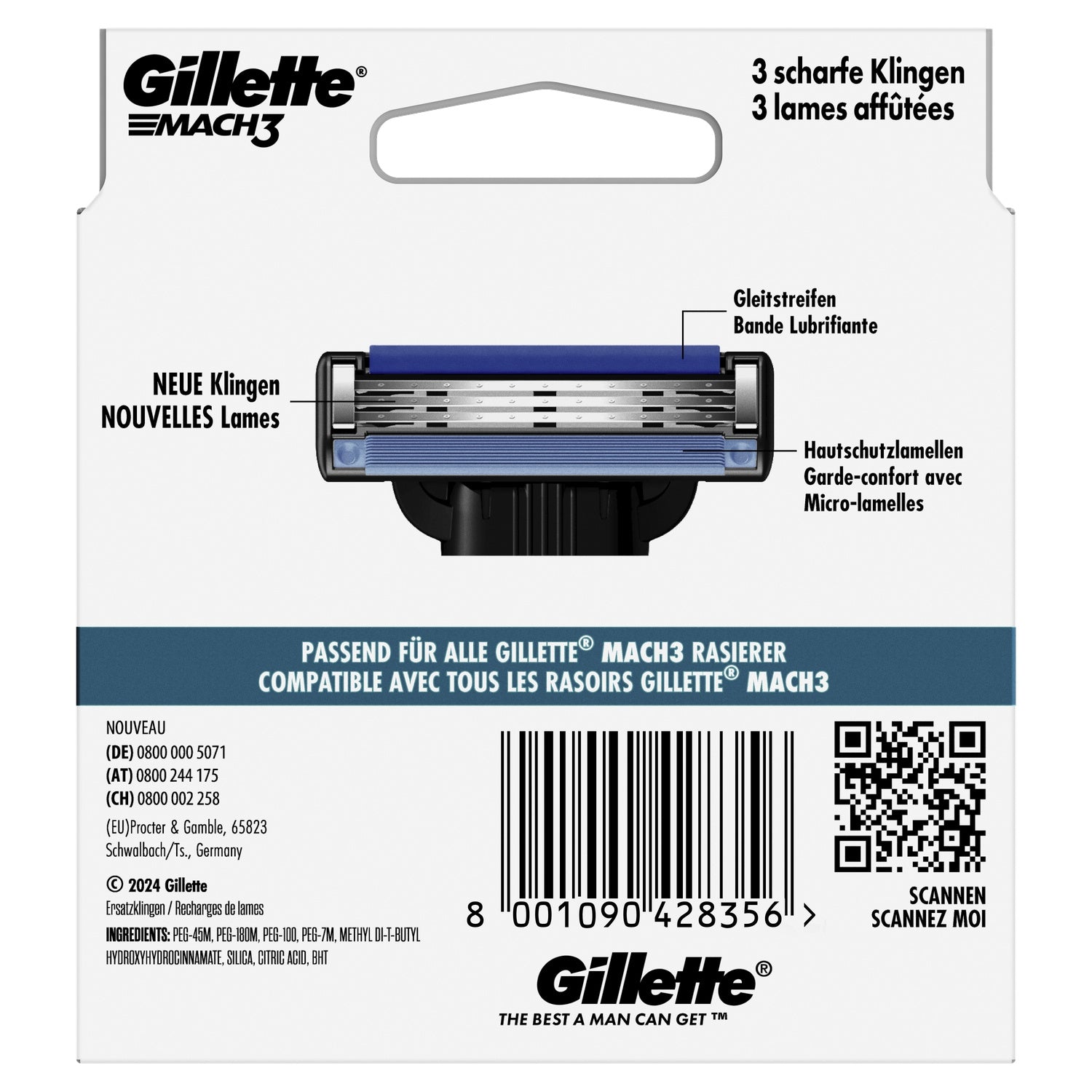 Gillette Mach3 Rasierklingen-Nachfüllpackungen für Männer, 6 Stück, mit Gleitstreifen für sanftes Gleiten und neuer Klingenbeschichtung zur Reduzierung des Drucks auf der Haut