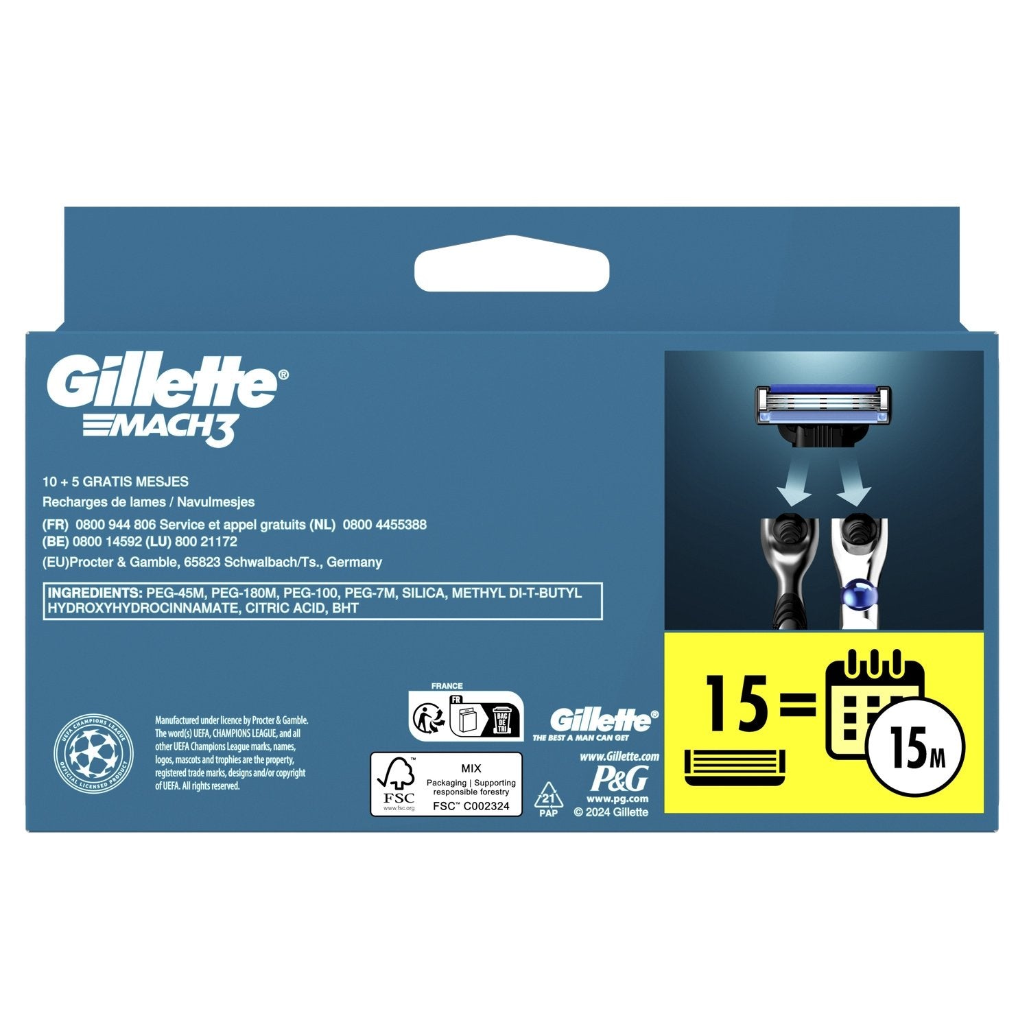 Gillette Mach3 Rasierklingen-Nachfüllpackungen für Herren, 3-Klingen-Rasierer, 15 Klingen-Nachfüllpackungen, Klingen stärker als Stahl