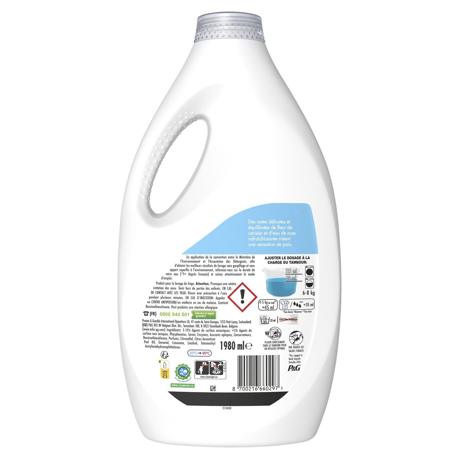 Dash 2in1 Flüssigwaschmittel 44 Wäschen, Kirschblüten- und Rosenwasser, Mit extra Frische Lenor, Hergestellt in Frankreich, Dash 2in1