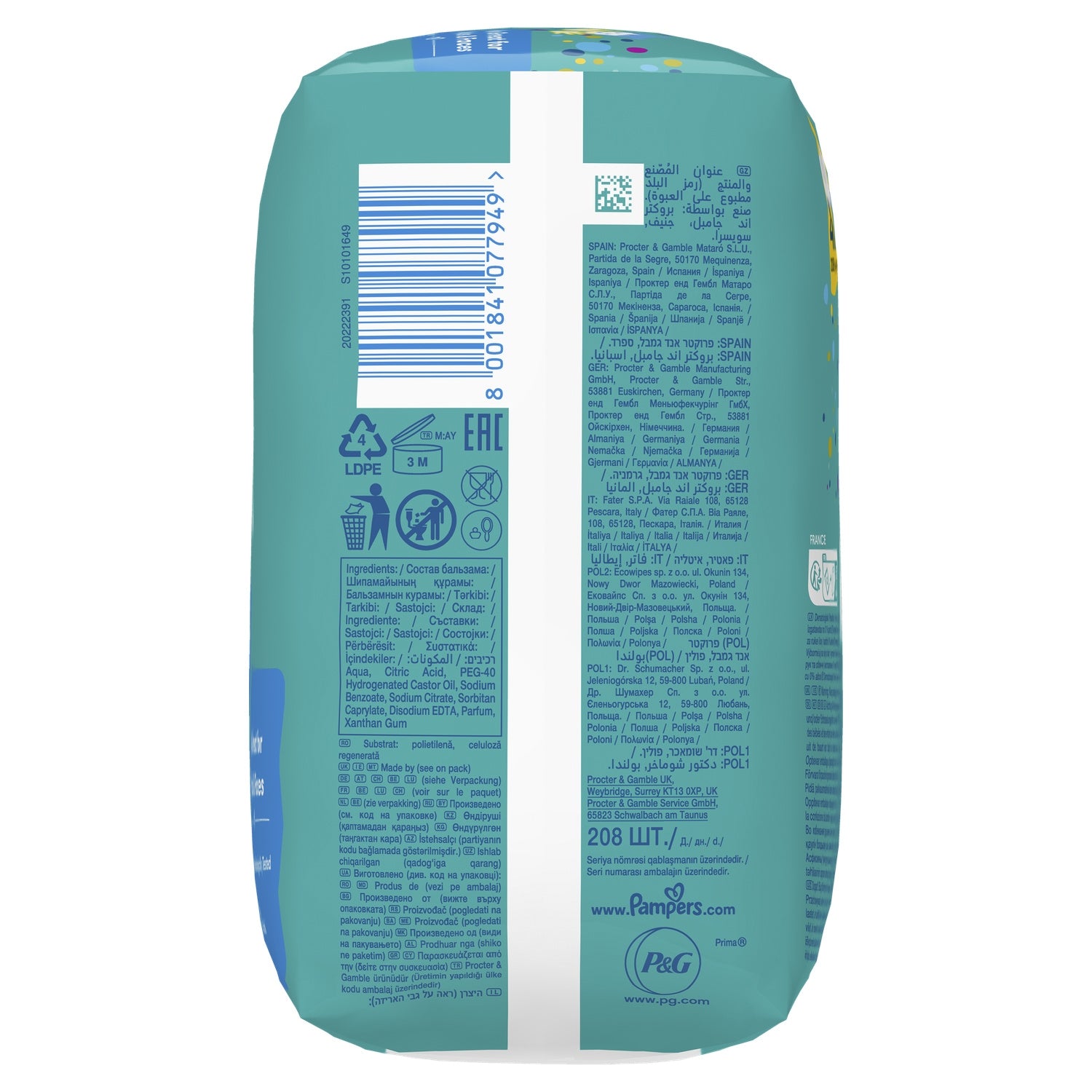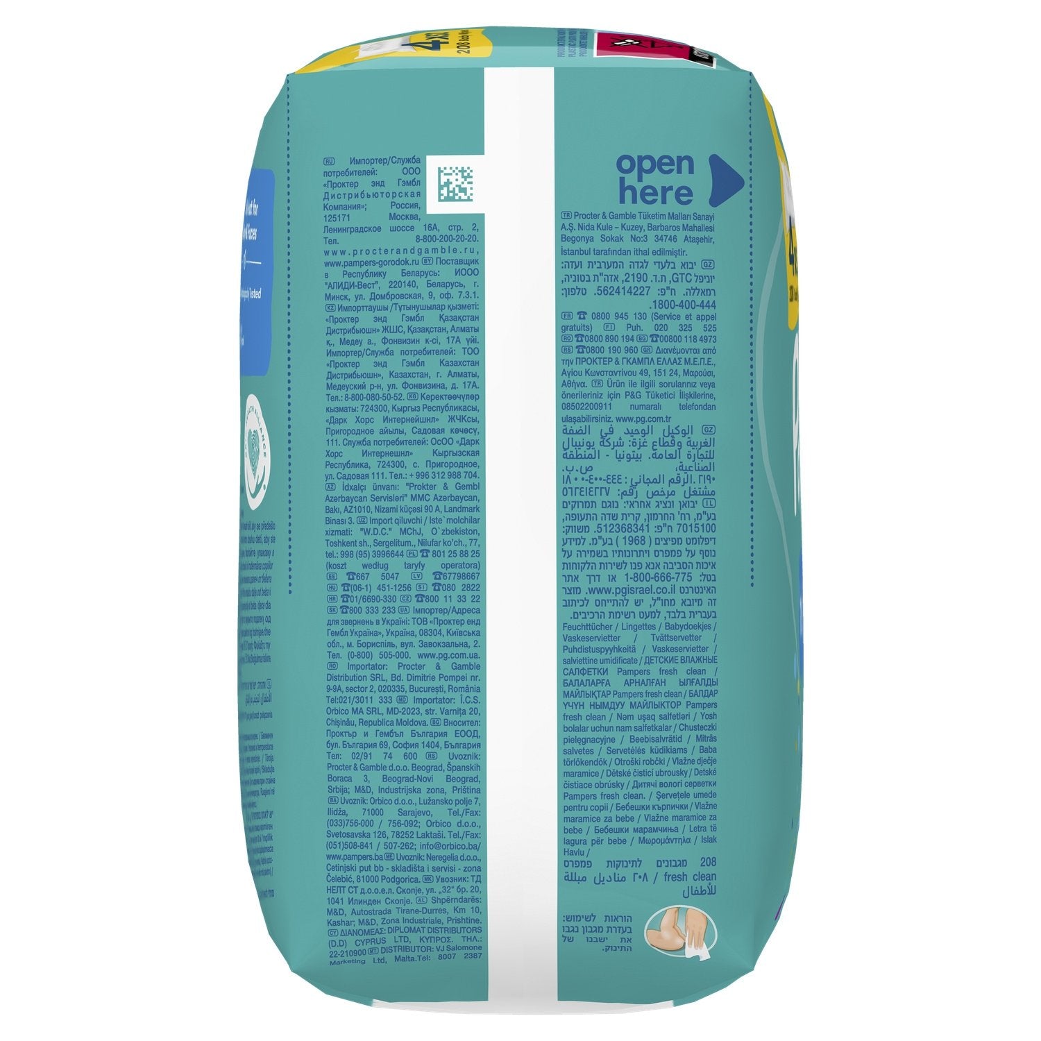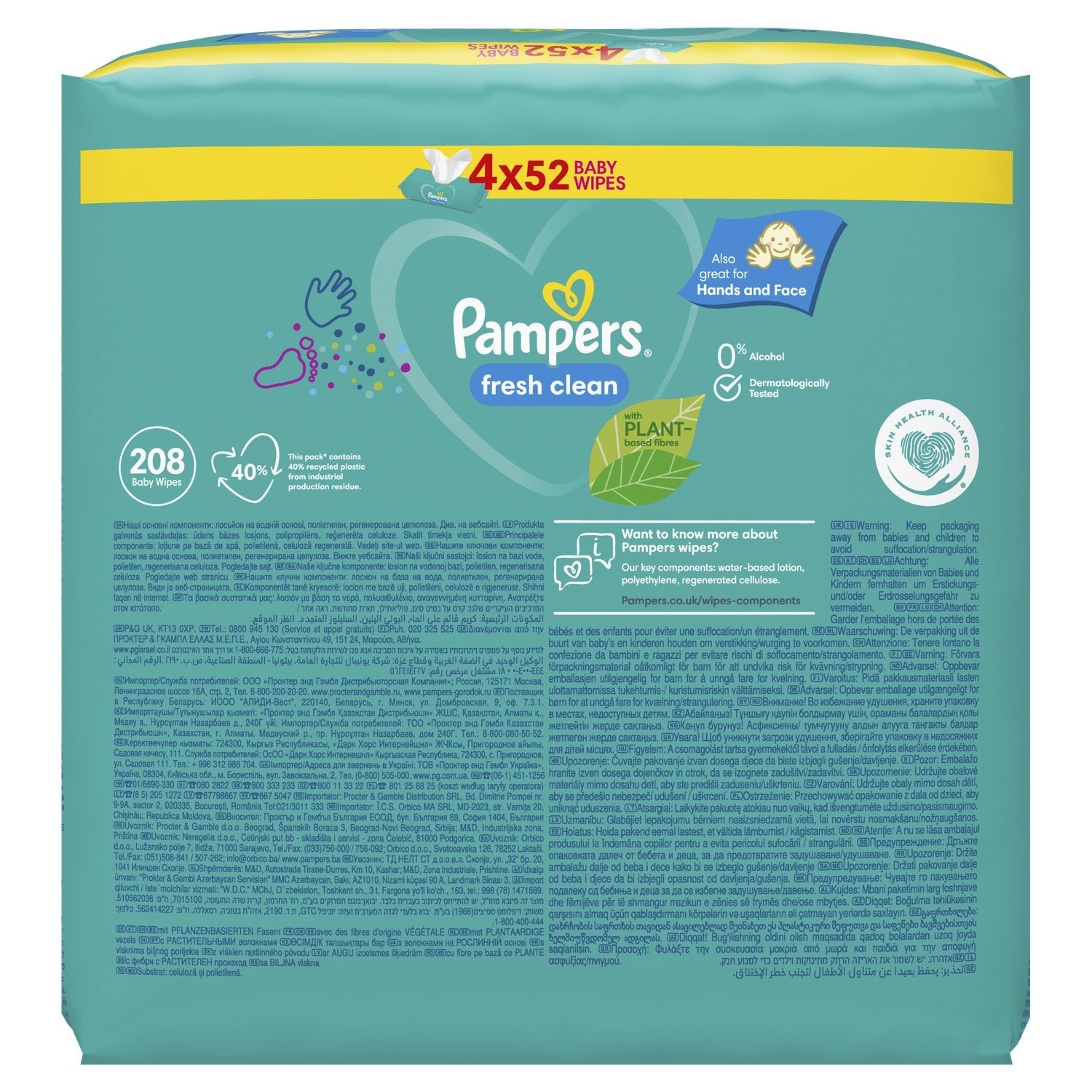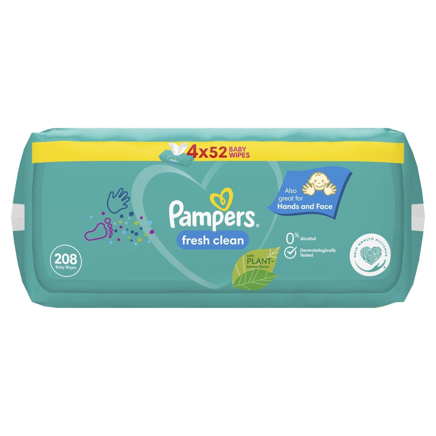 Pampers Fresh Clean Babytücher 4 Packungen à 52 Tücher = 208 Tücher, Für kleine Popos, Hände und Gesicht, Mit erfrischendem Duft