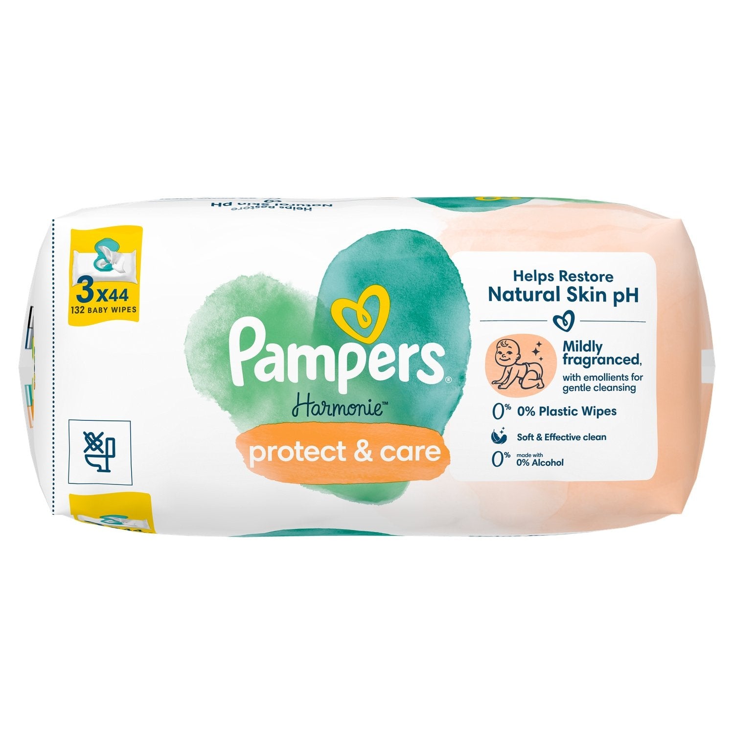Pampers Harmonie Protect & Care Babytücher, 3 Packungen mit je 44 Tüchern = 132 Babytücher, hilft, den natürlichen pH-Wert der Haut wiederherzustellen