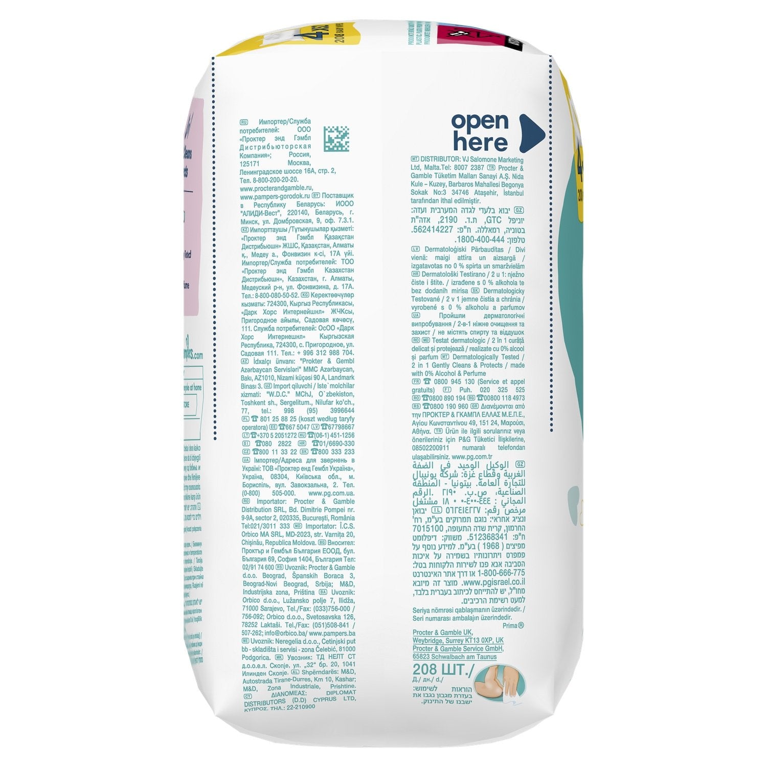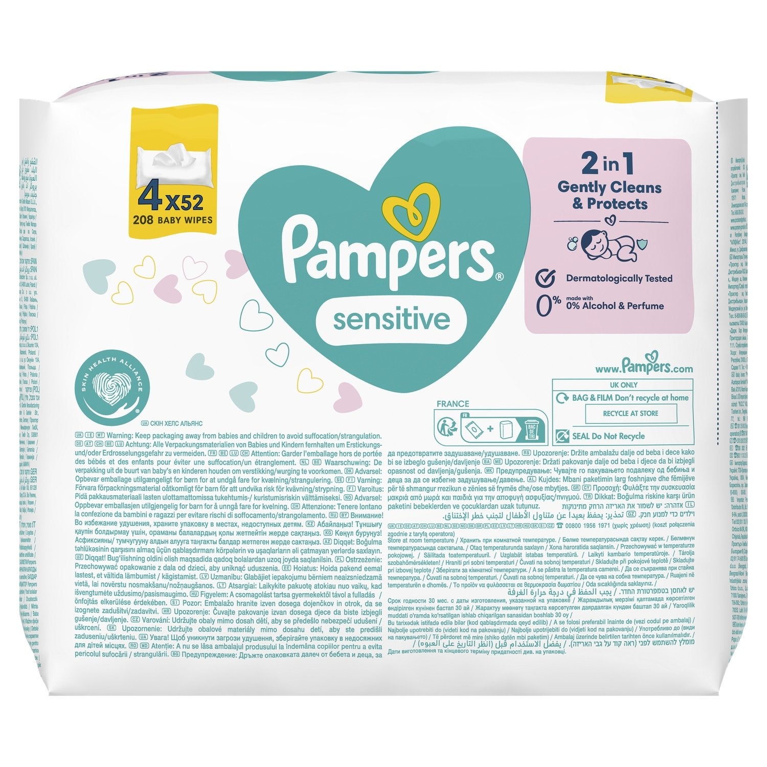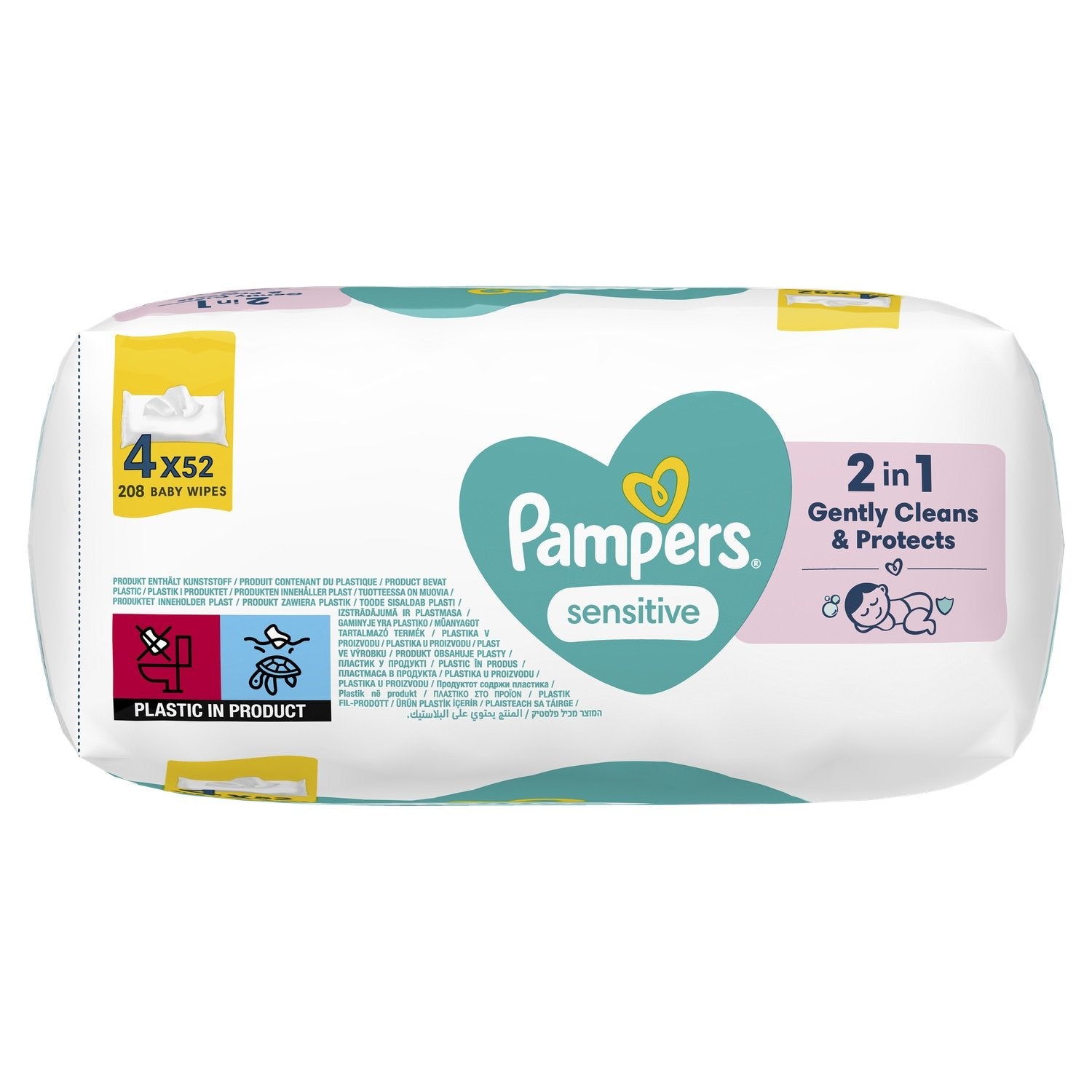 Pampers Sensitive Babytücher 4 Packungen mit 52 Tüchern = 208 unparfümierte Tücher, für eine sanfte und schonende Wäsche
