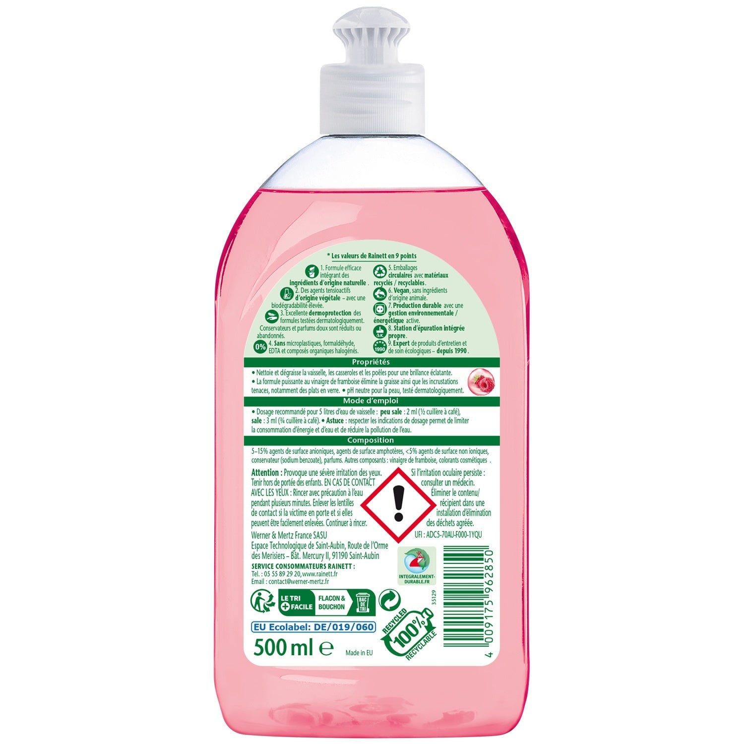 Rainett Ecolabel Konzentriertes Geschirrspülmittel Himbeeressig 500 ml