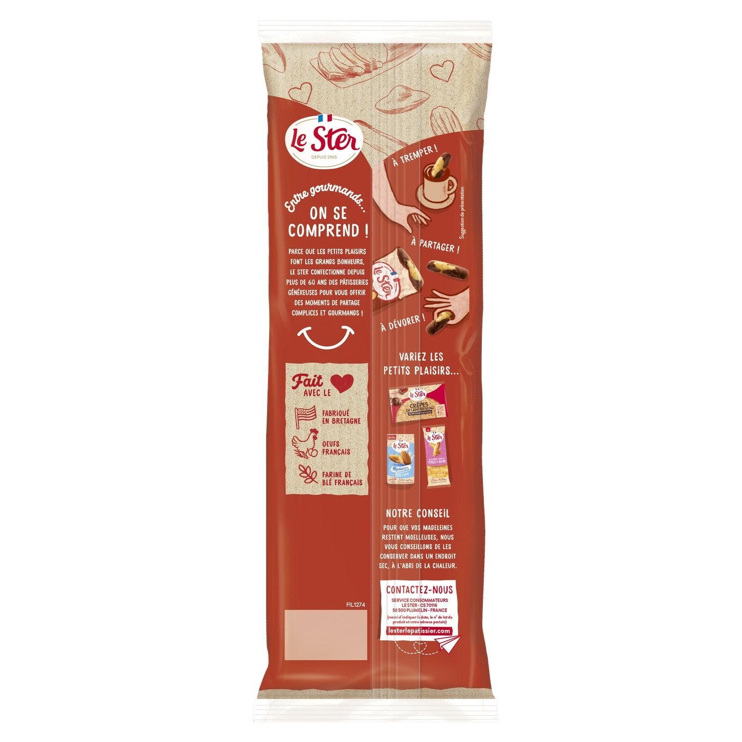 GENIESSEN SIE DIE LE STER LONG MADELEINE, DIE DIE WEICHHEIT EINER MADELEINE MIT DEM GUTEN GESCHMACK VON SCHOKOLADE VERBINDET. IHR GEHEIMNIS? SIE WIRD AUS FRISCHEN EIERN UND FRANZÖSISCHEM WEIZENMEHL HERGESTELLT. GARANTIERT OHNE PALMÖL UND KONSERVIERUNGSSTOFFE WIRD SIE DIE GESCHMACKSKNOSPEN VON KINDERN UND ERWACHSENEN VERWÖHNEN. HERGESTELLT IN FRANKREICH.