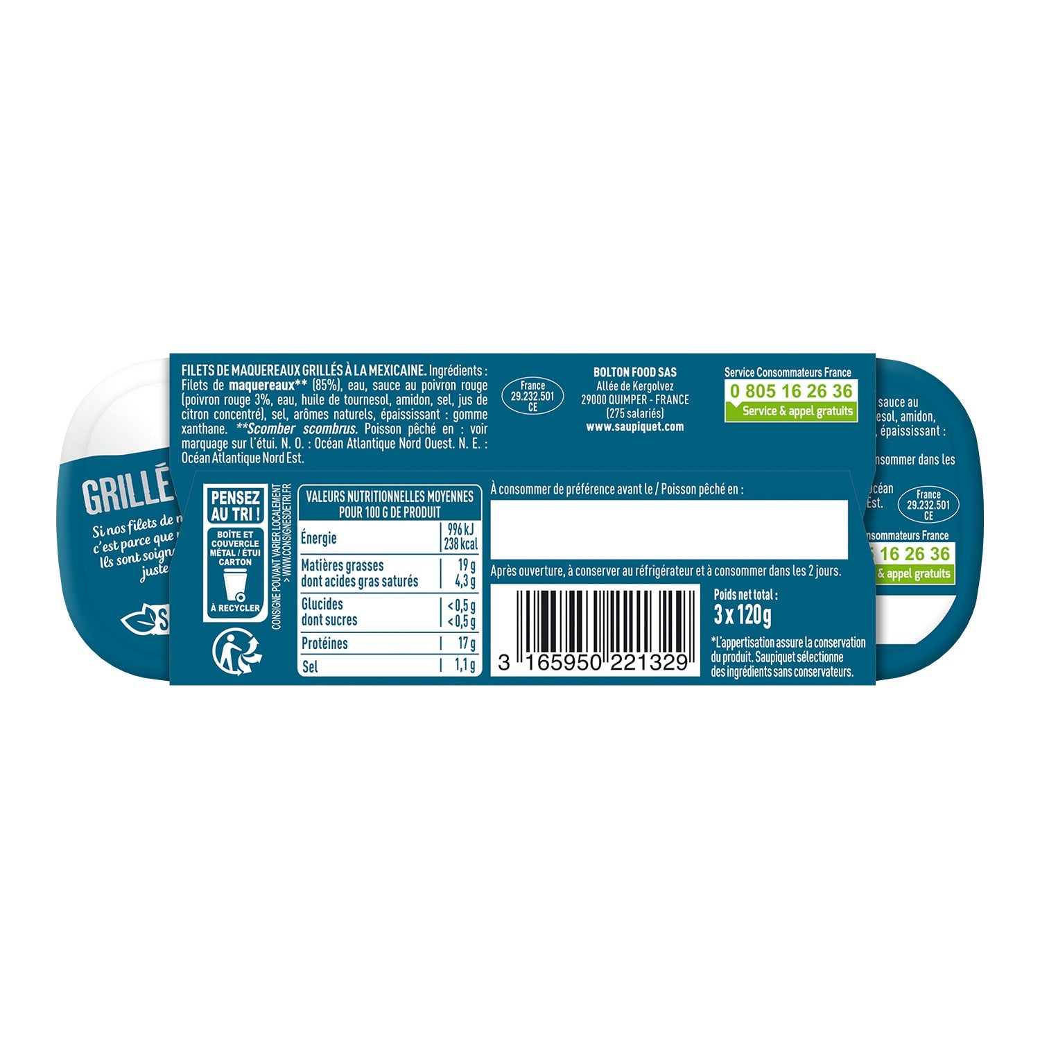 SAUPIQUET - Gegrillte Makrelenfilets nach mexikanischer Art - 3 Dosen à 120 g