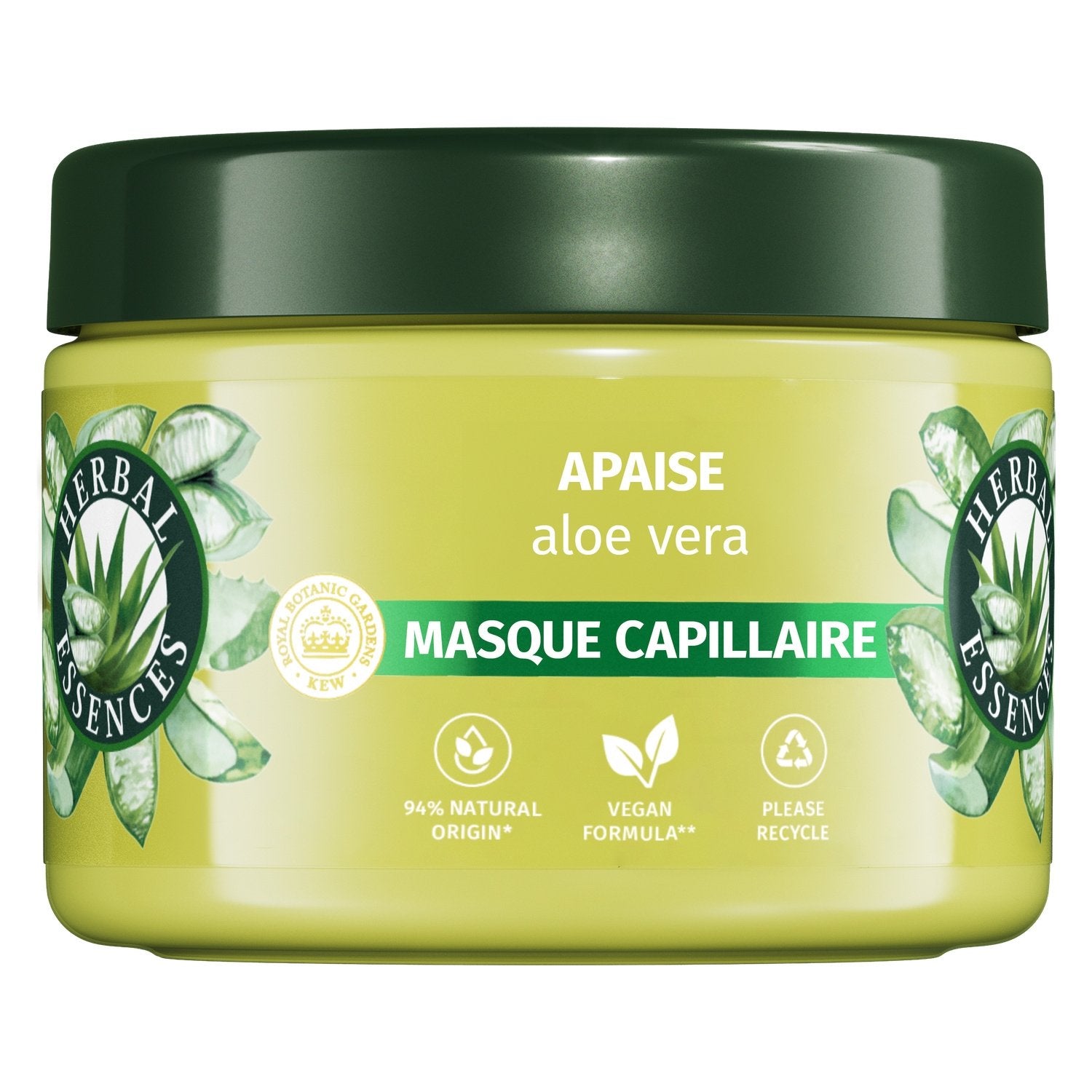 Herbal Essences Beruhigende Aloe Vera Maske 500 ml. Spendet Feuchtigkeit, reinigt und pflegt sehr trockenes Haar. Jasminduft und natürliche Inhaltsstoffe*. Vegan und tierversuchsfrei.