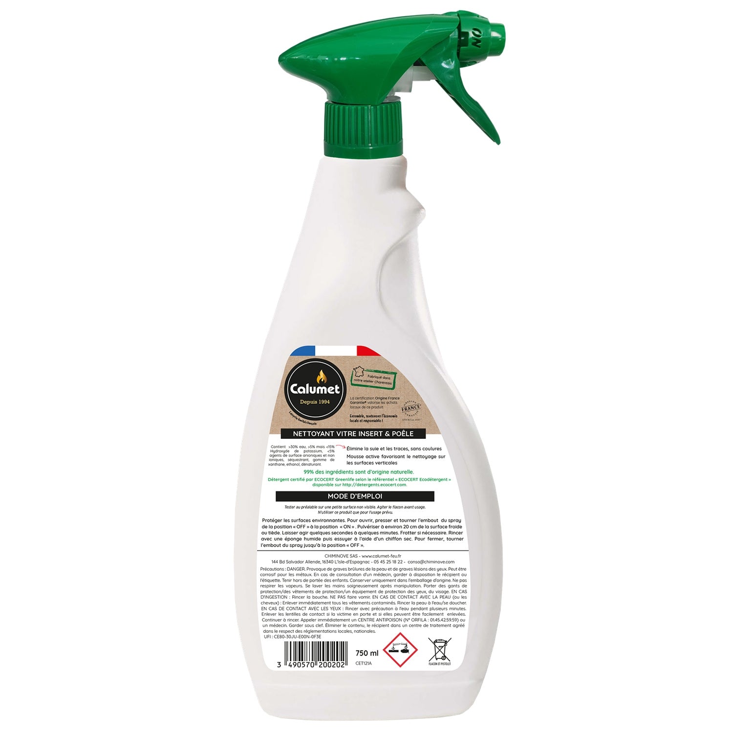 Der Einsatz- und Ofenreiniger besteht aus natürlichen Inhaltsstoffen. Diese Ecocert-zertifizierte und wirksame Formel entfernt Ruß und Teer von Fenstern.