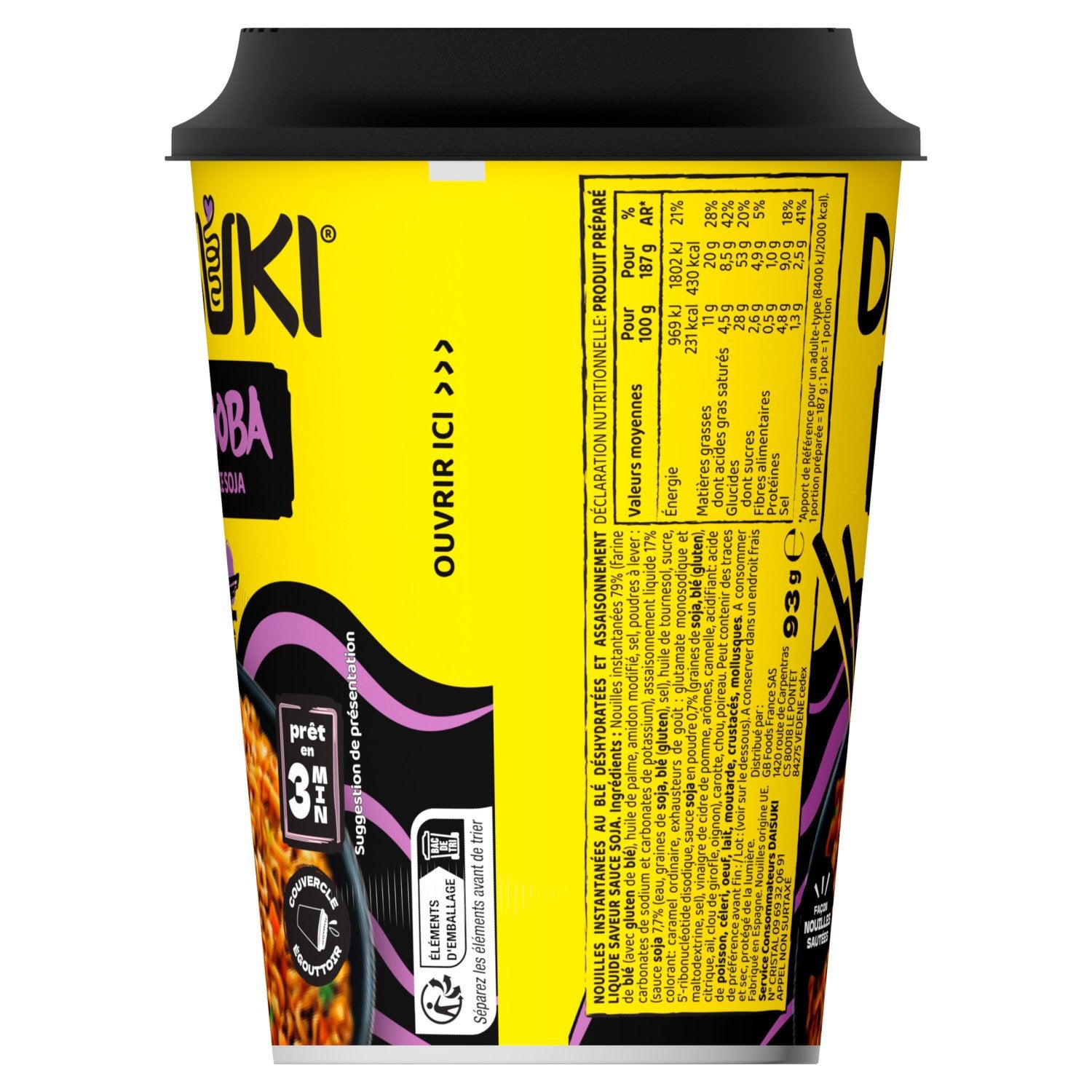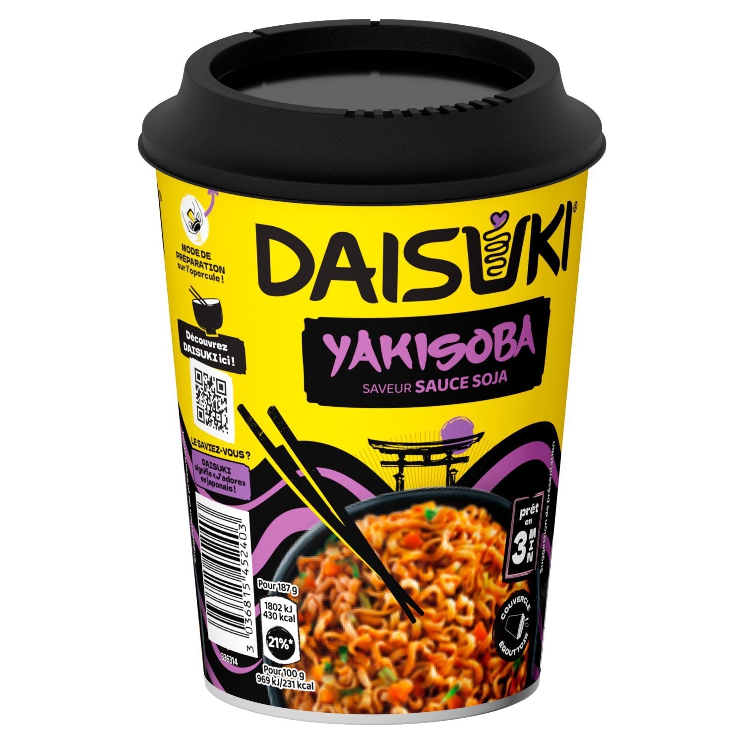 Entdecken Sie DAISUKI Yakisoba, die neue Linie gebratener Instantnudeln, inspiriert von japanischem Streetfood. Instantnudeln mit authentischen Rezepten: Chicken Yakitori, Curry und Gemüse, Soja, super einfach zuzubereiten dank des Abtropfdeckels und in 3 Minuten fertig! Erhältlich im Einzelportionsbecherformat. DAISUKI bedeutet auf Japanisch „Ich liebe“.