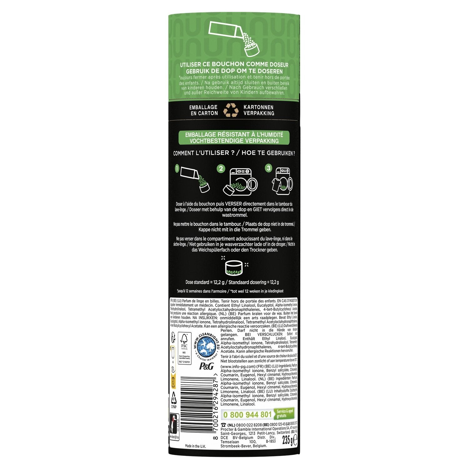 Bis zu 12 Wochen ununterbrochene Frische für Ihre Wäsche im Kleiderschrank, Ein Perl-Wäscheduft, der die luftige Frische sauberer Wäsche verströmt, Intensivieren Sie den Duft, indem Sie die Perlenmenge erhöhen, Kann bei jedem Waschgang für alle Textilarten hinzugefügt werden, Geben Sie den Perl-Wäscheduft direkt in die leere Trommel, bevor Sie Ihre Wäsche hineingeben