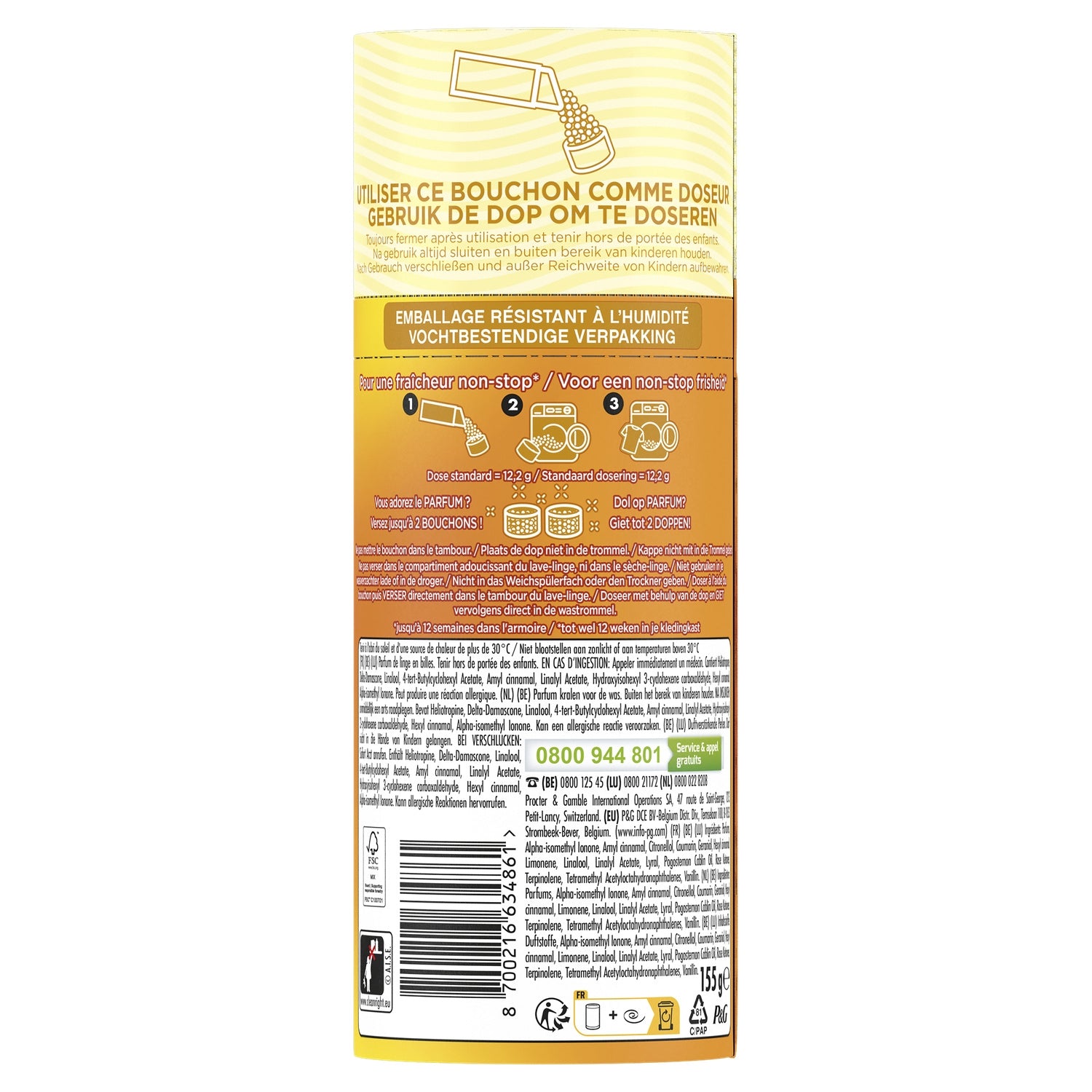 Bis zu 12 Wochen ununterbrochene Frische für Ihre Wäsche im Kleiderschrank.,Wäscheduftperlen inspiriert von einem verführerischen Hauch kostbarer Heliotrop-, Vanille- und Sandelholznoten.,Individuelle Duftintensität durch Wahl der Perlenmenge.,Kann bei jedem Waschgang für alle Textilarten hinzugefügt werden.,Gib die Wäscheduftperlen direkt in die leere Trommel, bevor du deine Wäsche hineingibst.