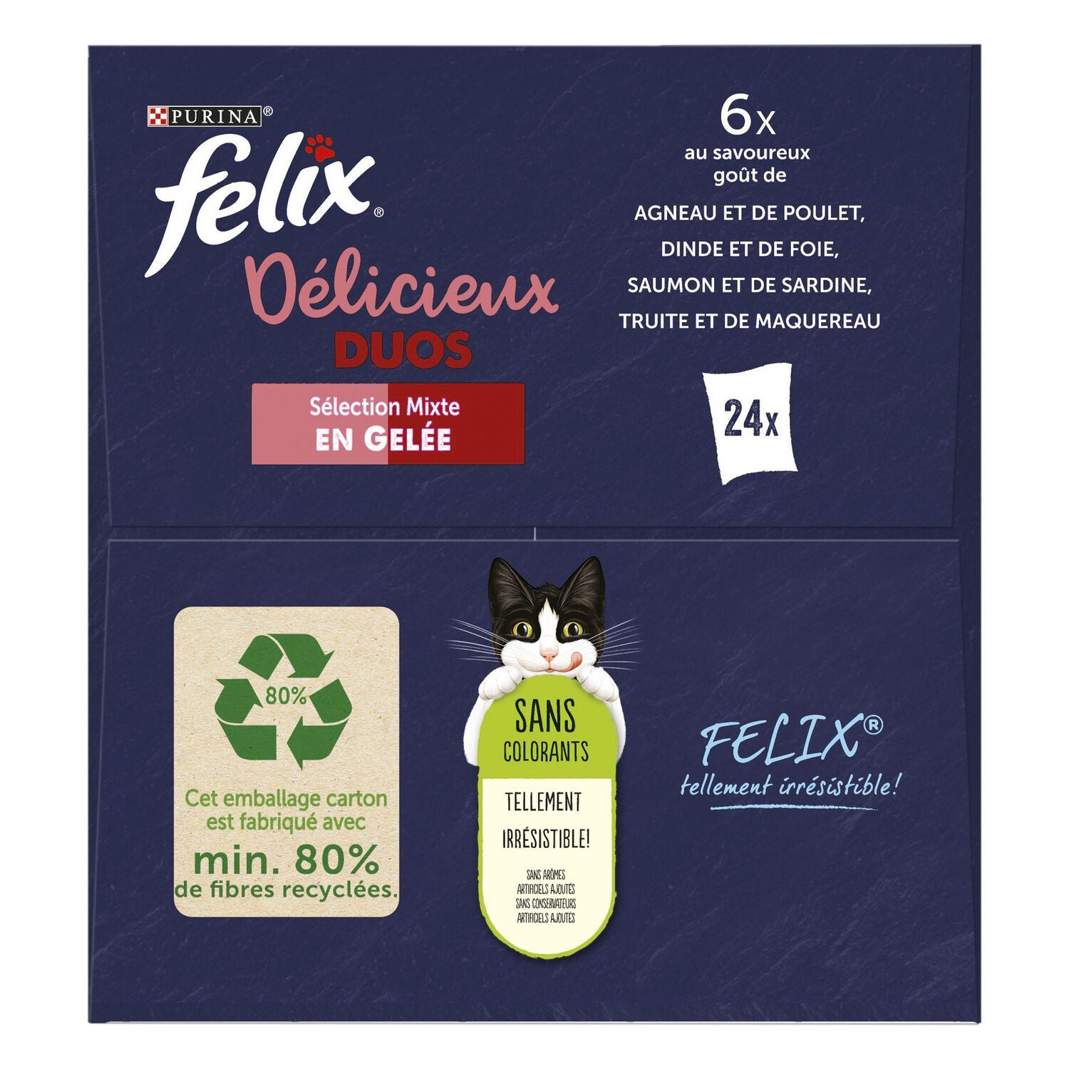FELIX Adult Katzenfutter Delicious Duos in Jelly Lamm Huhn Pute Leber