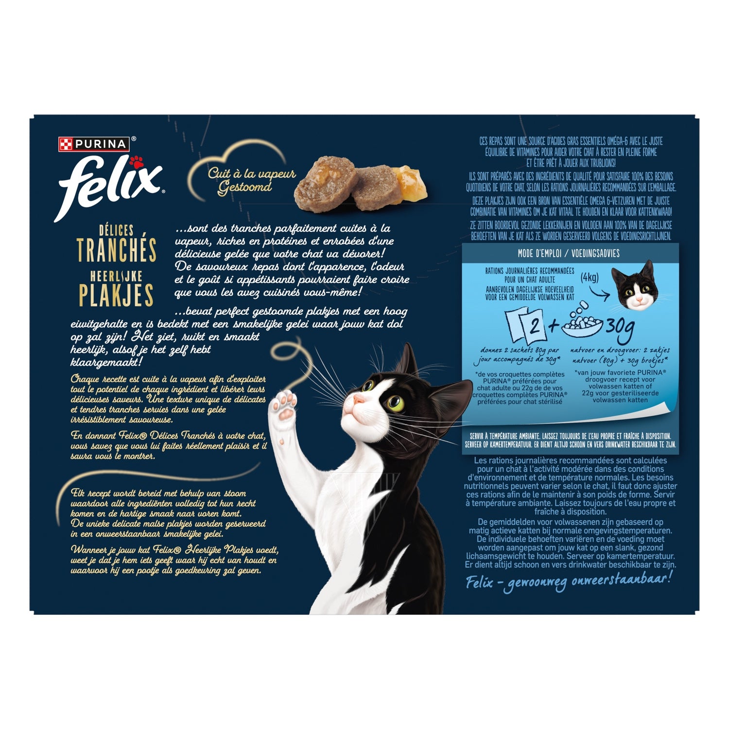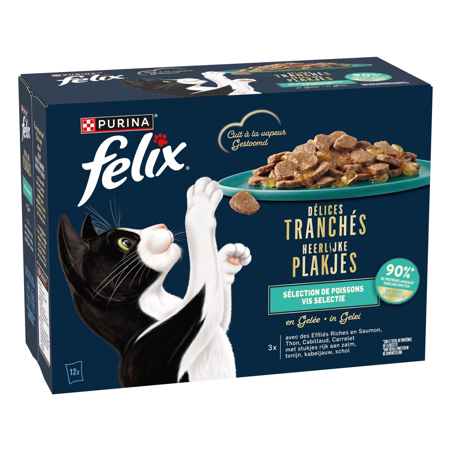 FELIX Sliced Delights sind perfekt gedämpfte, proteinreiche Scheiben, umhüllt von einem köstlichen Gelee, das Ihre Katze verschlingen wird! Herzhafte Mahlzeiten, die so appetitlich aussehen, riechen und schmecken, dass Sie glauben könnten, Sie hätten sie selbst gekocht! Jedes Rezept wird gedämpft, um das volle Potenzial jeder Zutat auszuschöpfen und ihre köstlichen Aromen freizusetzen. Eine einzigartige Textur aus zarten und zarten Scheiben, serviert in einem unwiderstehlich leckeren Gelee. Und das ist noch nicht alles! FELIX Sliced Delights ist in einer Reihe köstlicher Rezepte erhältlich, um den Appetit Ihrer Katze auf Abwechslung jeden Tag zu stillen. FELIX, so unwiderstehlich! FELIX Sliced Delights sind perfekt gedämpfte Scheiben, reich an Proteinen und umhüllt von einem köstlichen Gelee, das Ihre Katze verschlingen wird! Leckere Mahlzeiten, die so appetitlich aussehen, riechen und schmecken, dass Sie glauben könnten, Sie hätten sie selbst gekocht! Jedes Rezept wird gedämpft, um das volle Potenzial jeder Zutat auszuschöpfen und ihre köstlichen Aromen freizusetzen. Eine einzigartige Textur aus zarten und zarten Scheiben, serviert in einem unwiderstehlich leckeren Gelee. Und das ist noch nicht alles! FELIX Sliced Delights gibt es in verschiedenen leckeren Rezepturen, um den täglichen Hunger Ihrer Katze nach Abwechslung zu stillen. FELIX, so unwiderstehlich!