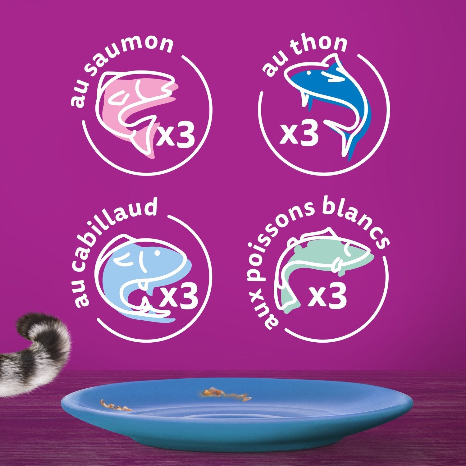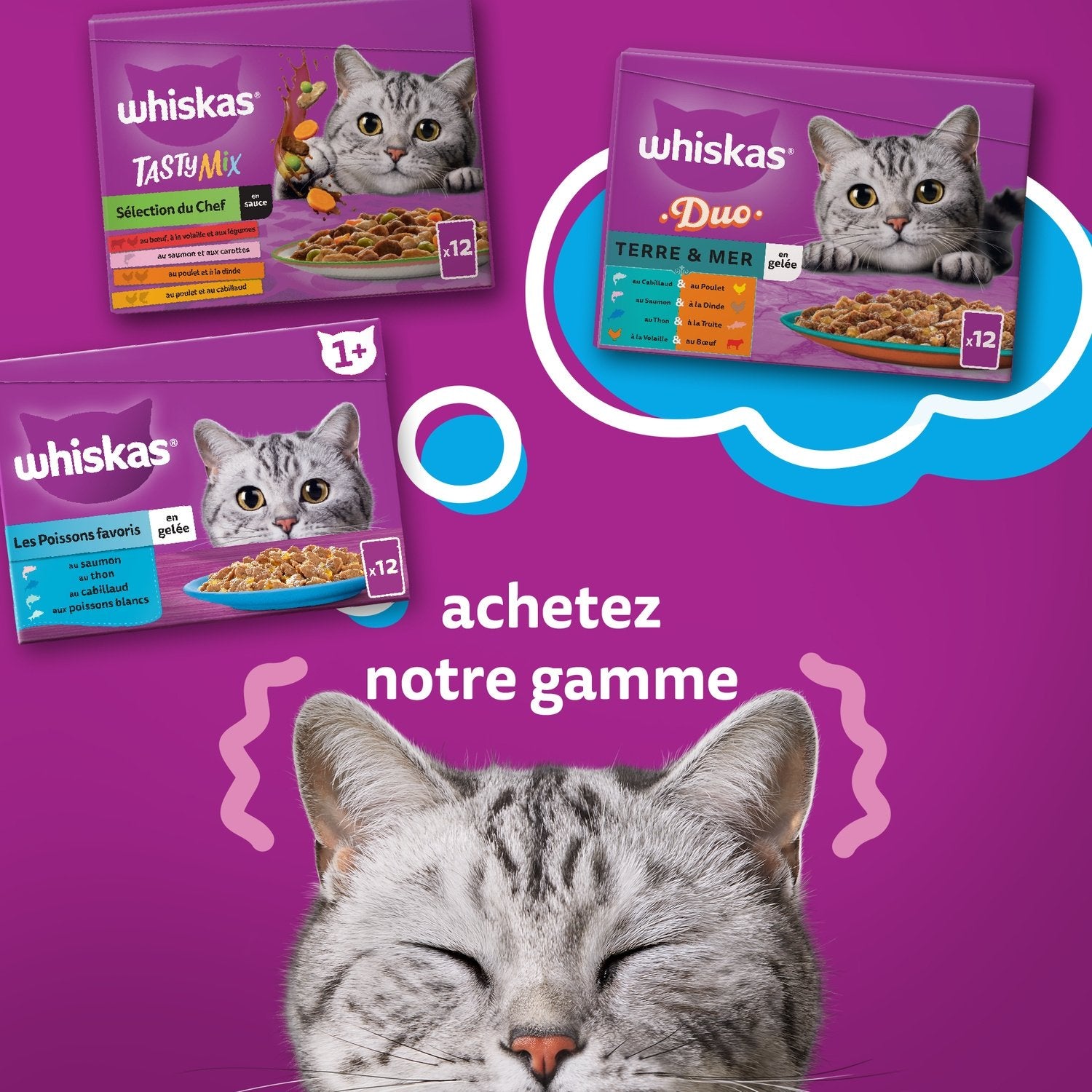 Adult Katzenfutter in Gelee Lachs Thunfisch Kabeljau Weißfisch WHISKAS Lieblingsfisch