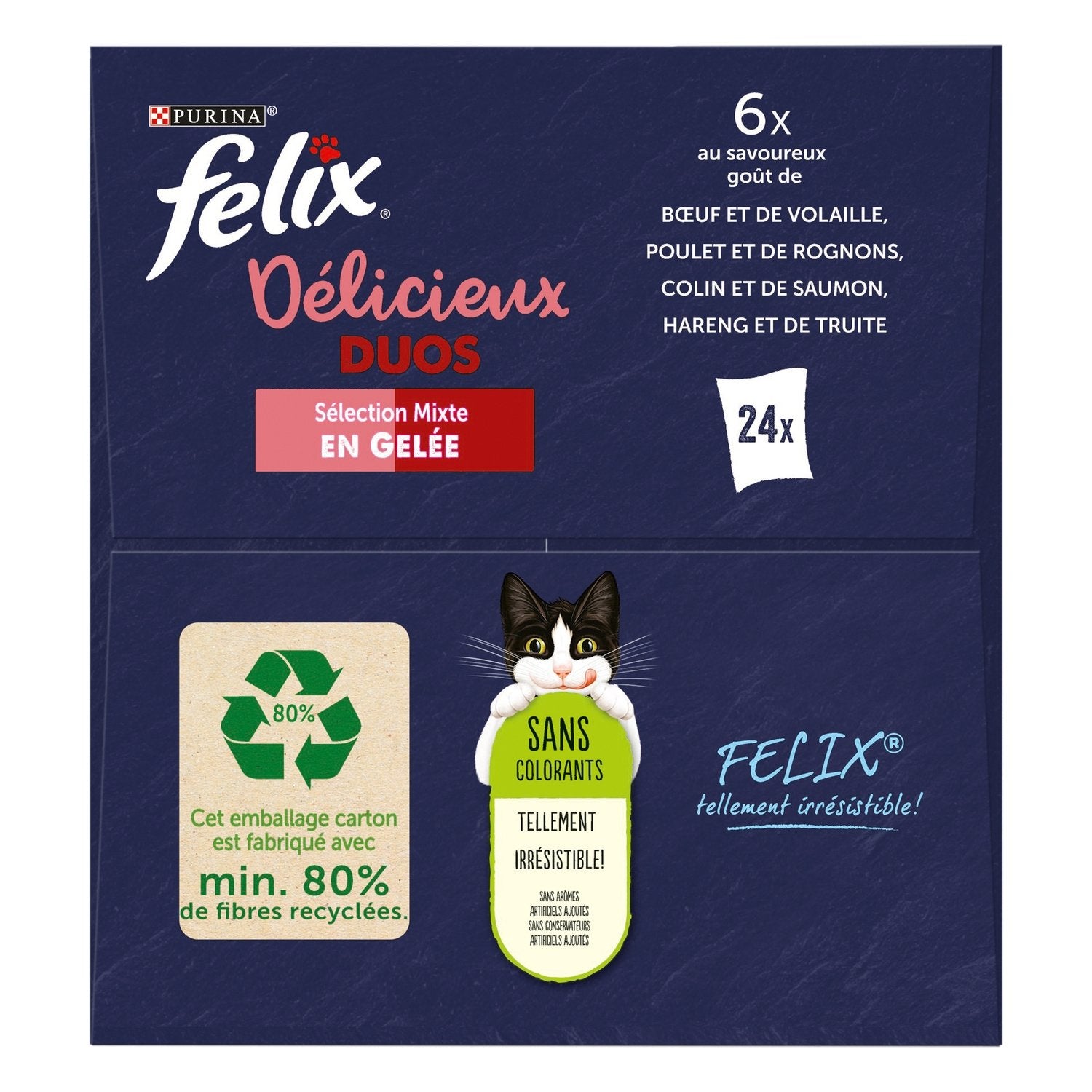 Adult Katzenfutter in Gelee mit Fleisch und Fisch, Delicious Duos FELIX
