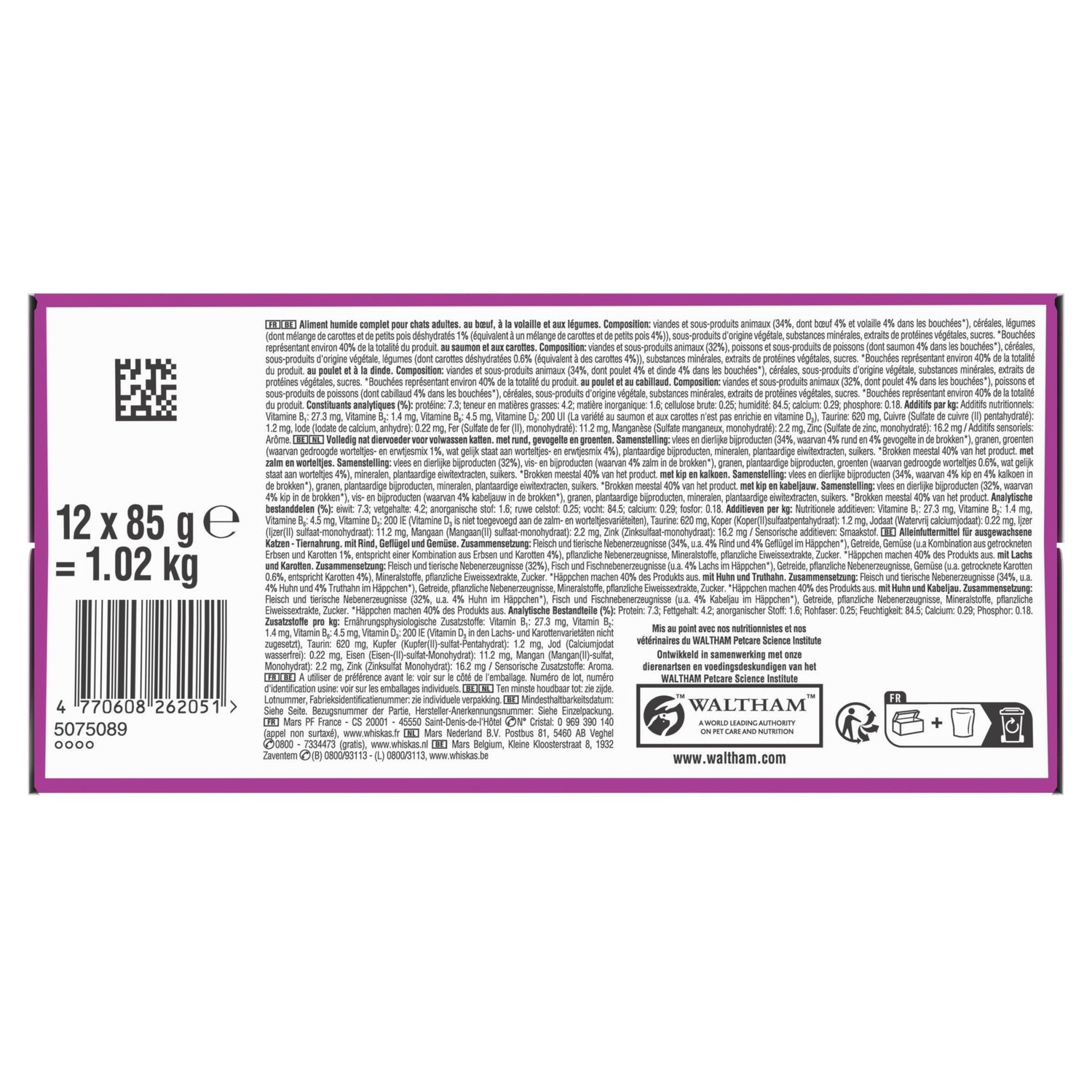 Vollständiges und ausgewogenes Futter für erwachsene Katzen – Entwickelt von unseren Ernährungswissenschaftlern und Tierärzten am Waltham Petcare Science Institute, um Ihre Katze zu 100 % mit ihrem täglichen Bedarf zu versorgen. Packung mit 12 Frischebeuteln in Sauce à 85 g.