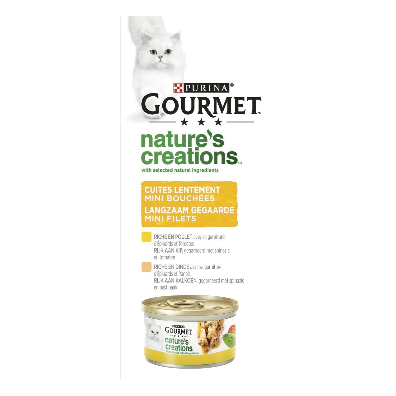 GOURMET™ Nature's Creations bietet köstliche Rezepte, inspiriert von der Natur. Unsere Rezepte werden sorgfältig mit ausgewählten, hochwertigen natürlichen Zutaten zubereitet und mit größter Sorgfalt für exquisite Mahlzeiten gekocht. Reich an Rind, Lamm, Geflügel oder Fisch und begleitet von Gemüse wie Spinat, Karotten, Tomaten und Reis. Unsere Rezepte sind so entwickelt, dass Ihr Feinschmecker jeden Bissen mit Genuss und Freude genießt. GOURMET™ Nature's Creations. Köstliche Mahlzeiten, inspiriert von der Natur.