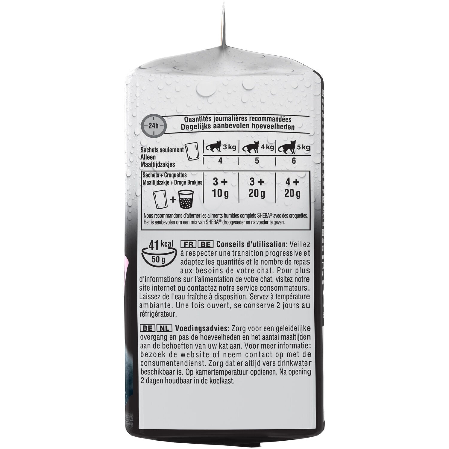 Sheba® Daily Delights in Sauce-Katzenfutterbeutel für ausgewachsene Katzen sind im Format 6 x 50 g erhältlich.