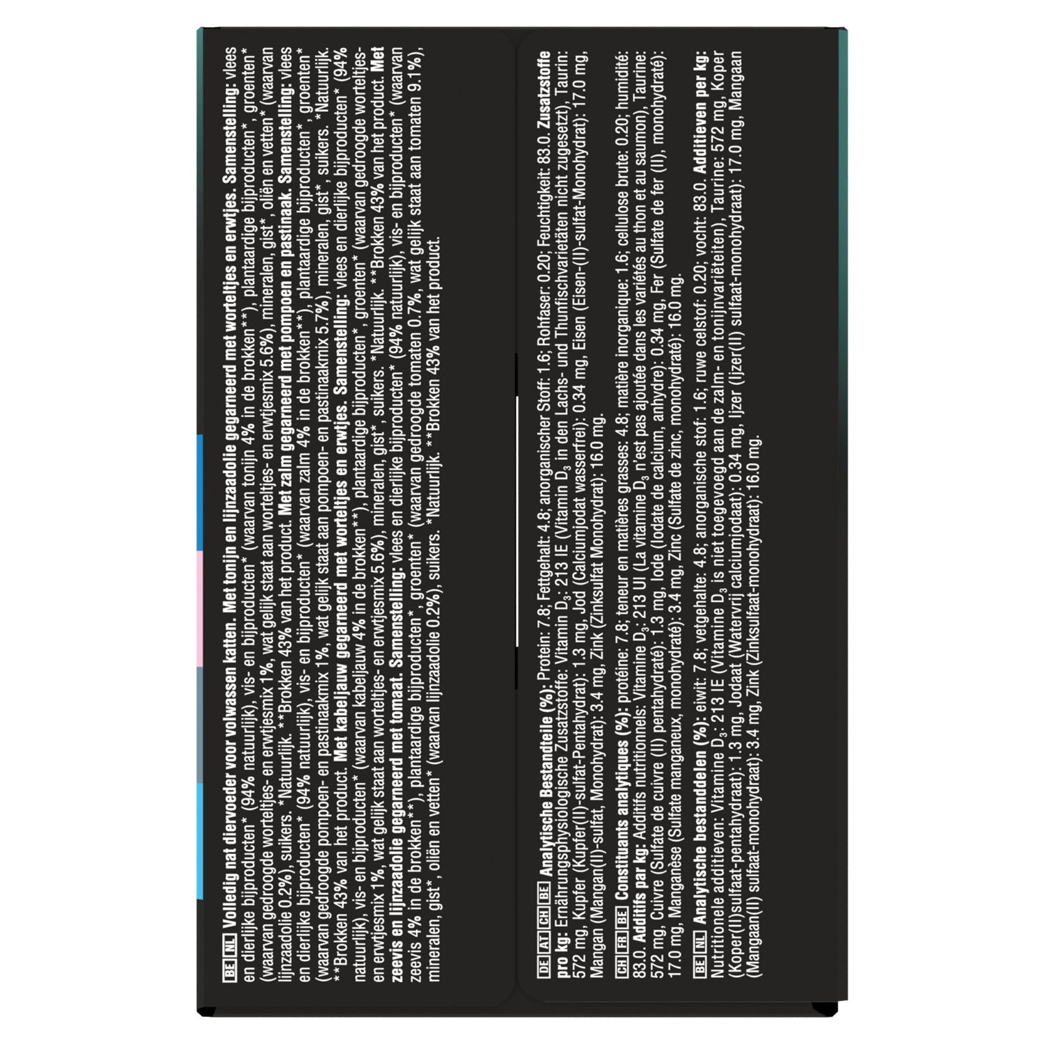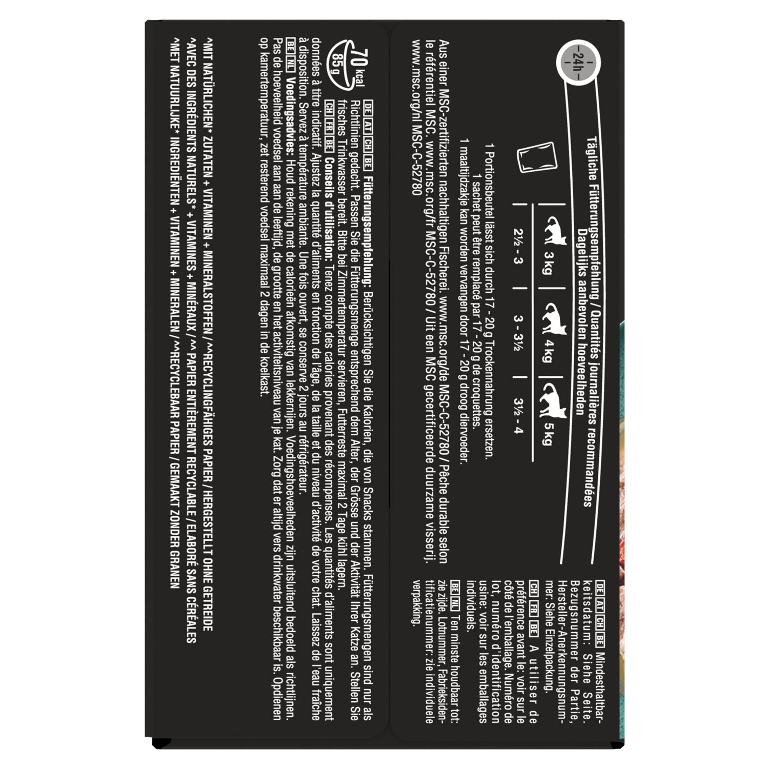 • Alleinfuttermittel für ausgewachsene Katzen • Frischebeutel in Sauce für Katzen mit hochwertigen Zutaten und Fisch aus nachhaltiger Fischerei nach MSC-Standard • 4 Geschmacksrichtungen für abwechslungsreichen Genuss • Leinöl ist eine natürliche Quelle für Omega-3-Fettsäuren. • Tomaten und Erbsen sind natürliche Quellen für Vitamin A und C.