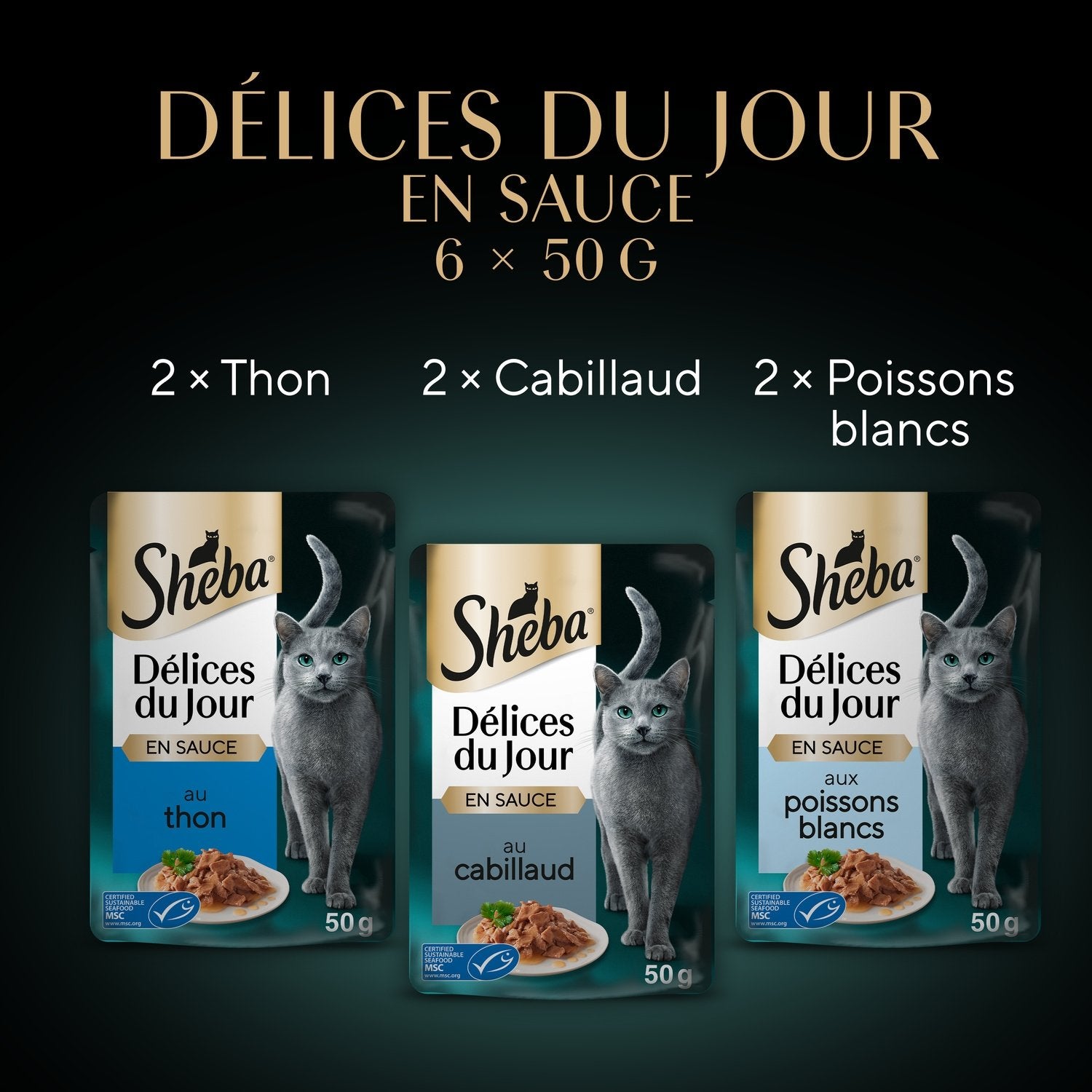 SHEBA Délices du Jour Frischebeutel in Fischsauce für Katzen 6x50 g