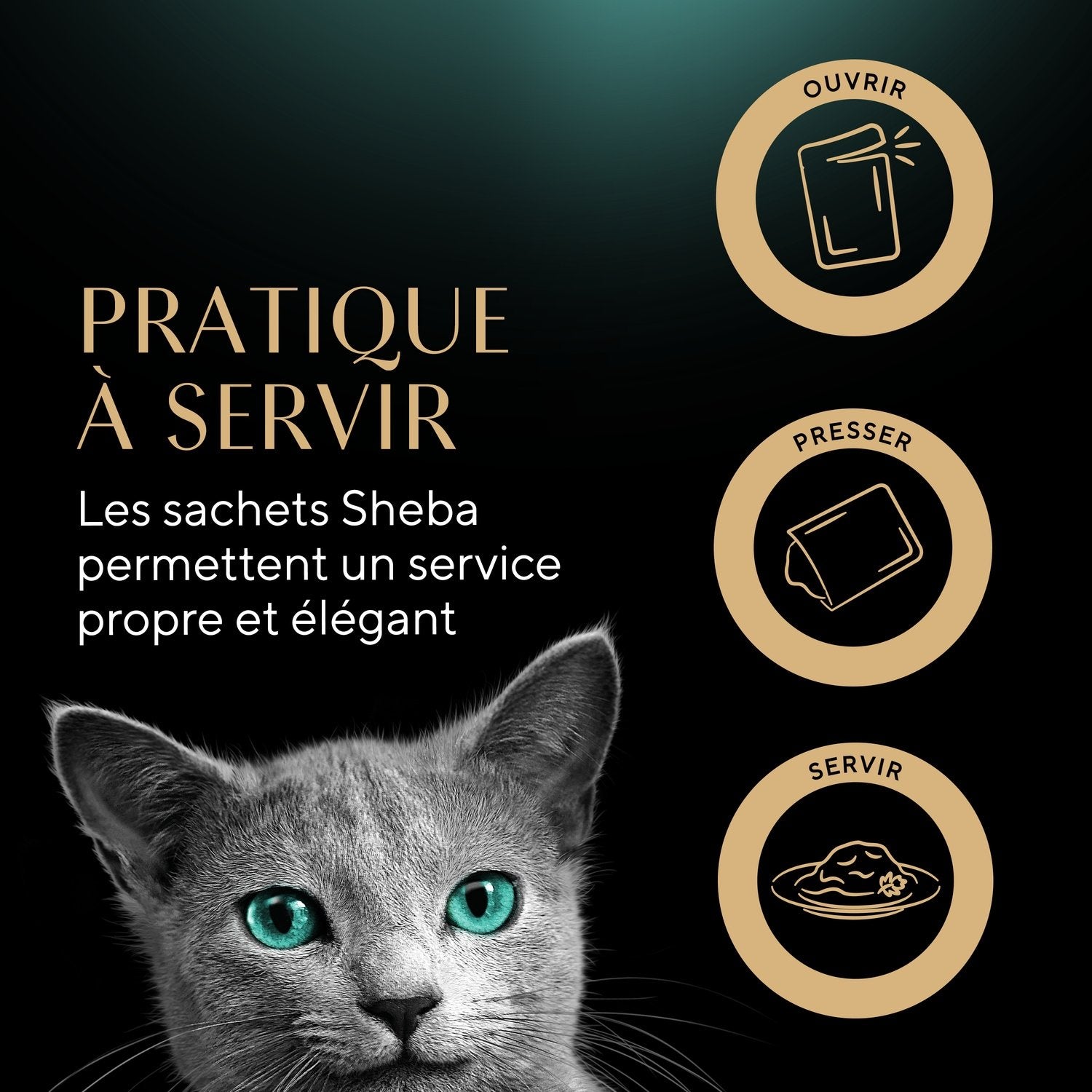 Alleinfuttermittel für ausgewachsene Katzen – 3 Sorten in Sauce aus nachhaltiger Fischerei (Thunfisch / Kabeljau / Weißfisch). Köstliche Scheiben in einer samtigen Sauce. Eine ideale Portion für eine stets frisch servierte Mahlzeit. Ein wunderbares Geschenk, um Tag für Tag Ihre Liebe zu zeigen. Bieten Sie Ihrer Katze jeden Tag ein außergewöhnliches Rezept und vertiefen Sie die Bindung zu ihr. Jede Sheba® Daily Delights Katzenmahlzeit wird mit hochwertigen Zutaten zubereitet. Deshalb setzen wir uns dafür ein, Fisch aus verantwortungsvoller Fischerei zu verwenden. Eines unserer größten Engagements ist die verantwortungsvolle und nachhaltige Beschaffung all unserer Fischprodukte. Unser Fisch stammt aus nachhaltiger Fischerei gemäß dem MSC-Standard. www.msc.org/fr MSC-C-52780. Wir bieten unseren Haustieren verantwortungsvolle und gesunde Futterprodukte, sowohl bei der Beschaffung unserer Rohstoffe als auch unserer Produkte…