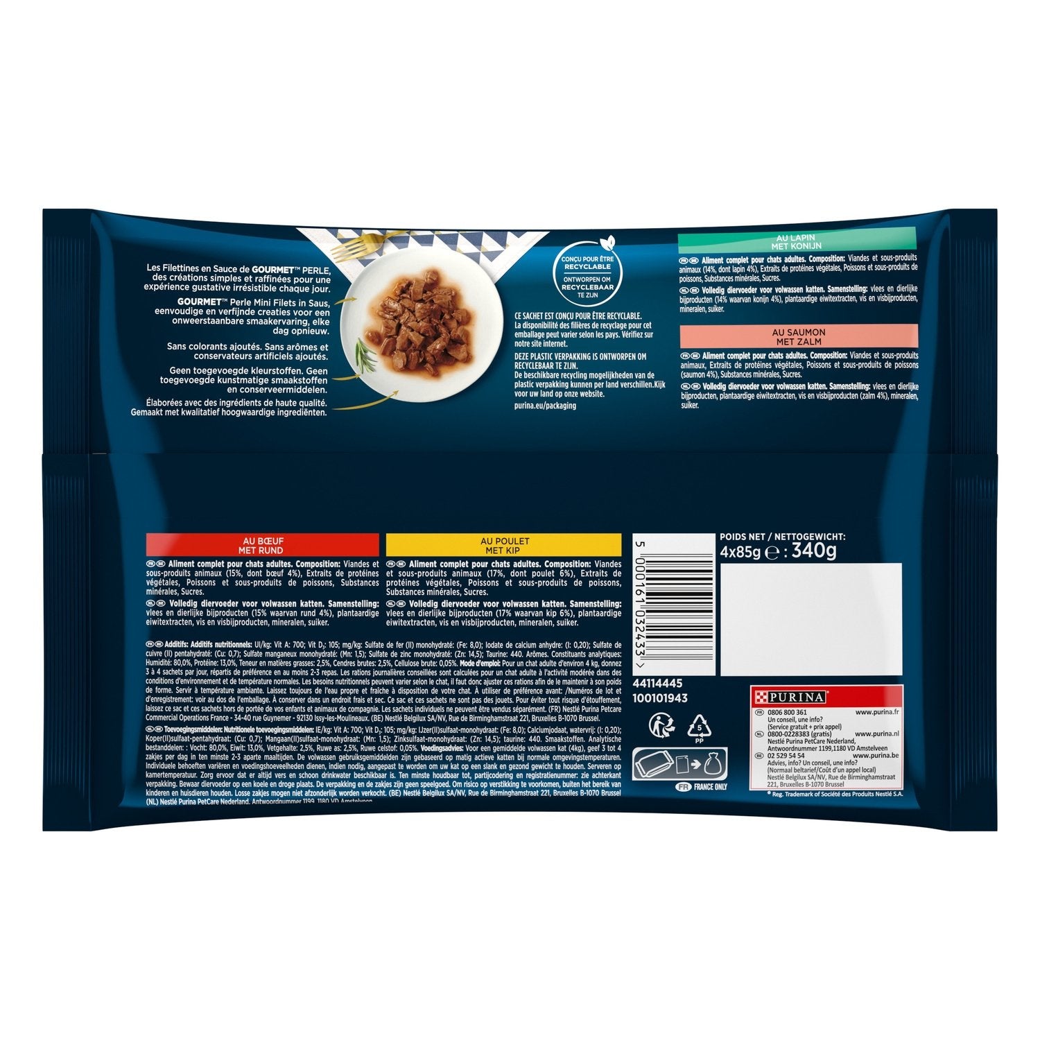 Adult Katzenfutter Mini-Filets in Sauce Rind Huhn Kaninchen Lachs Perle GOURMET