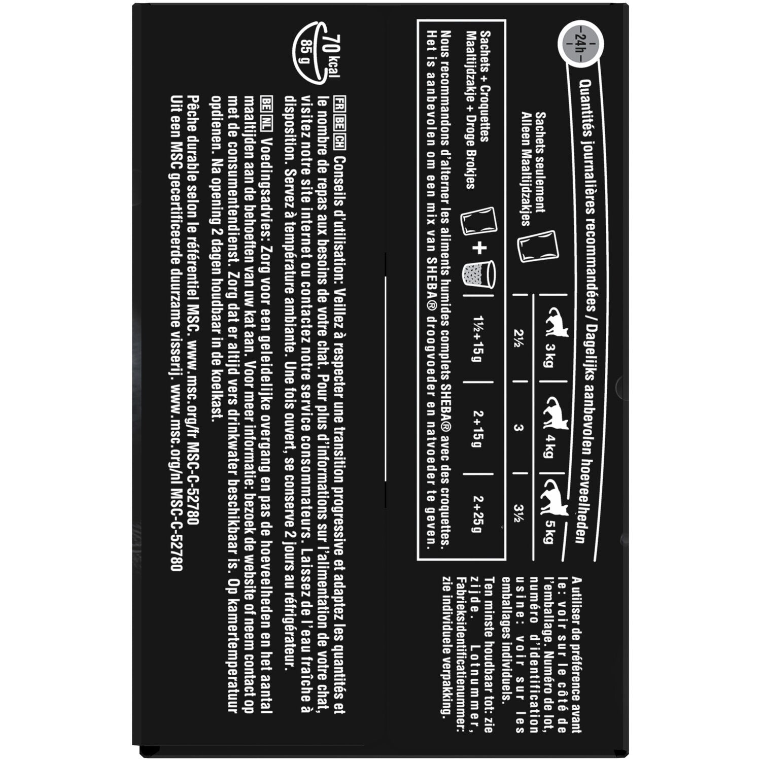 Jedes Rezept für Mini-Filets in Sheba®-Sauce wird mit hochwertigen Zutaten zubereitet. 100 % unseres Fischs stammen aus nachhaltigem Anbau. Die verantwortungsvolle und nachhaltige Beschaffung all unserer Fischprodukte ist eine unserer größten Verpflichtungen. Unser Fisch wird nachhaltig gemäß dem MSC-Standard beschafft. www.msc.org/fr MSC-C-52780. Unseren Haustieren verantwortungsvolle und gesunde Nahrung zu bieten, sowohl bei der Beschaffung unserer Rohstoffe als auch bei unseren Herstellungsprozessen, ist eine unserer größten Herausforderungen. Das MSC-Umweltzeichen garantiert, dass wir die von Fischereiexperten festgelegten Kriterien erfüllen…