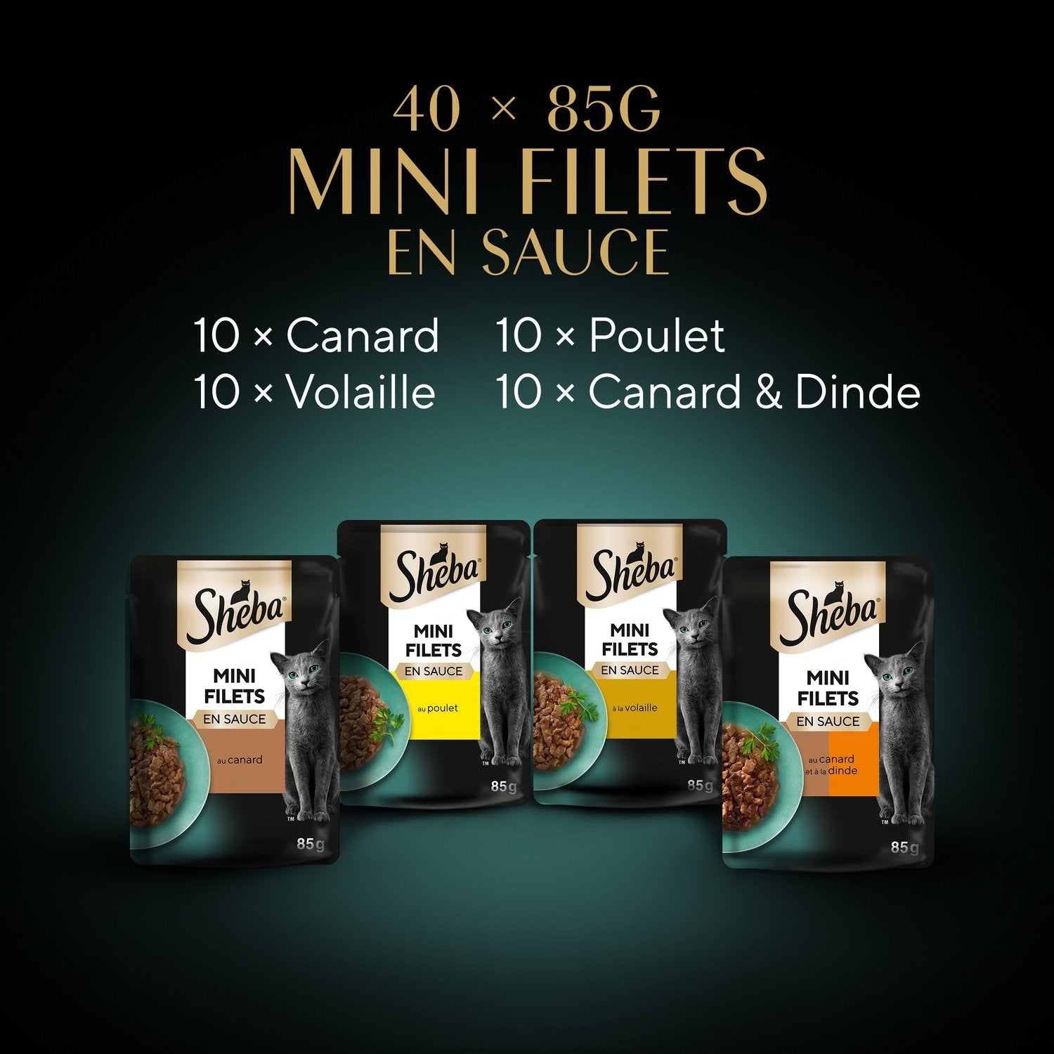 SHEBA Mini Filets Frischebeutel in Sauce Geflügelauswahl für ausgewachsene Katzen 40x85g