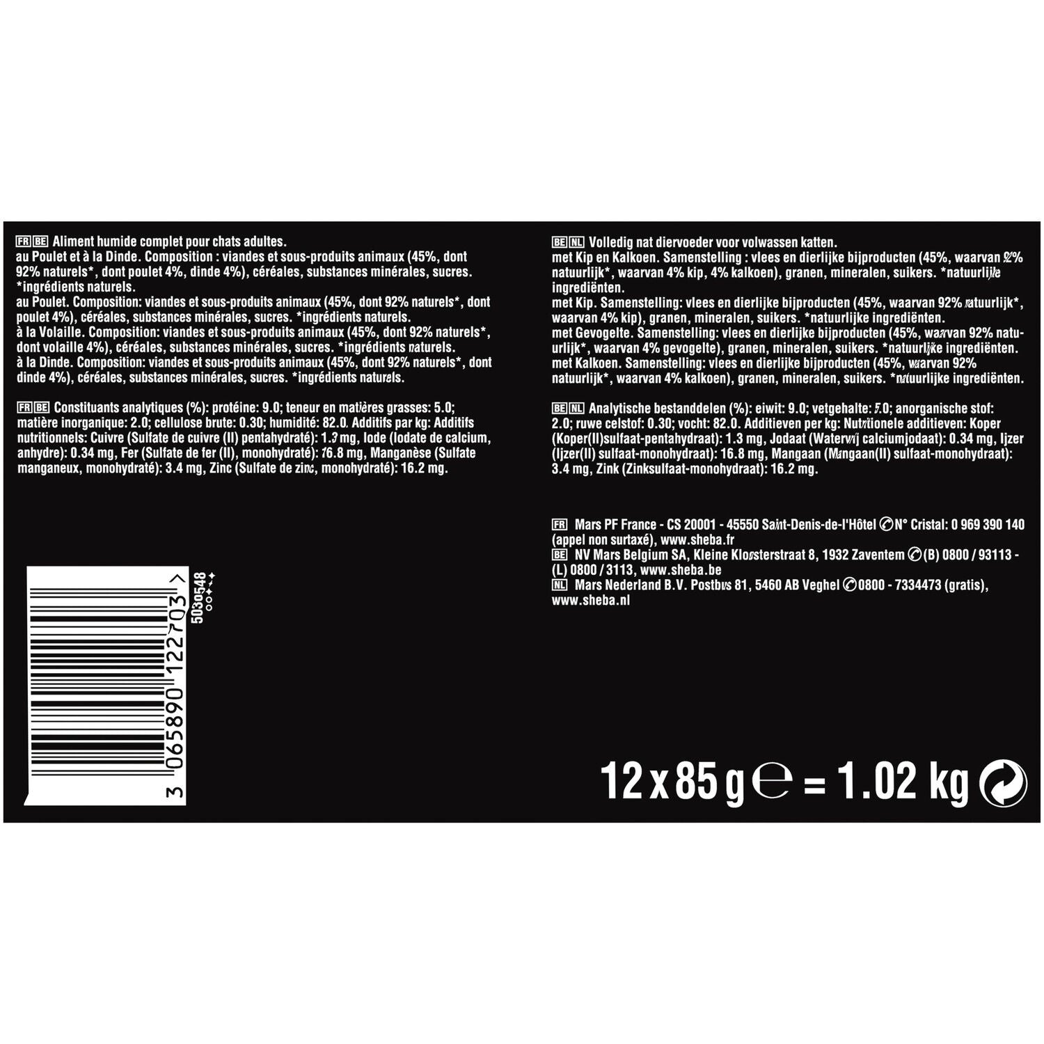 Huhn und Pute: Fleisch und tierische Nebenerzeugnisse (45 %, davon 92 % natürlich*, davon Huhn 4 %, Pute 4 %), Getreide, Mineralstoffe, Zucker. Huhn: Fleisch und tierische Nebenerzeugnisse (45 %, davon 92 % natürlich*, davon Huhn 4 %), Getreide, Mineralstoffe, Zucker. Geflügel: Fleisch und tierische Nebenerzeugnisse (45 %, davon 92 % natürlich*, davon Geflügel 4 %), Getreide, Mineralstoffe, Zucker. Pute: Fleisch und tierische Nebenerzeugnisse (45 %, davon 92 % natürlich*, davon Pute 4 %), Getreide, Mineralstoffe, Zucker. *natürliche Zutaten.