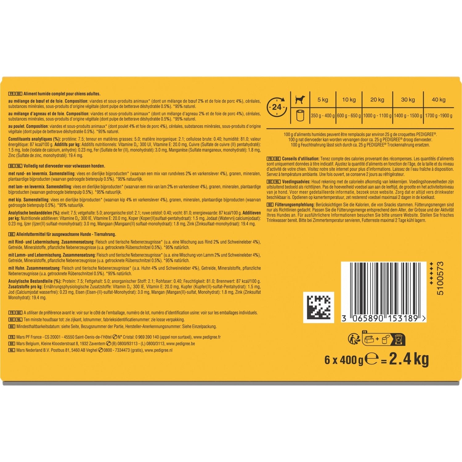 PEDIGREE Terrine Boxen 3 Sorten für erwachsene Hunde 6x400g