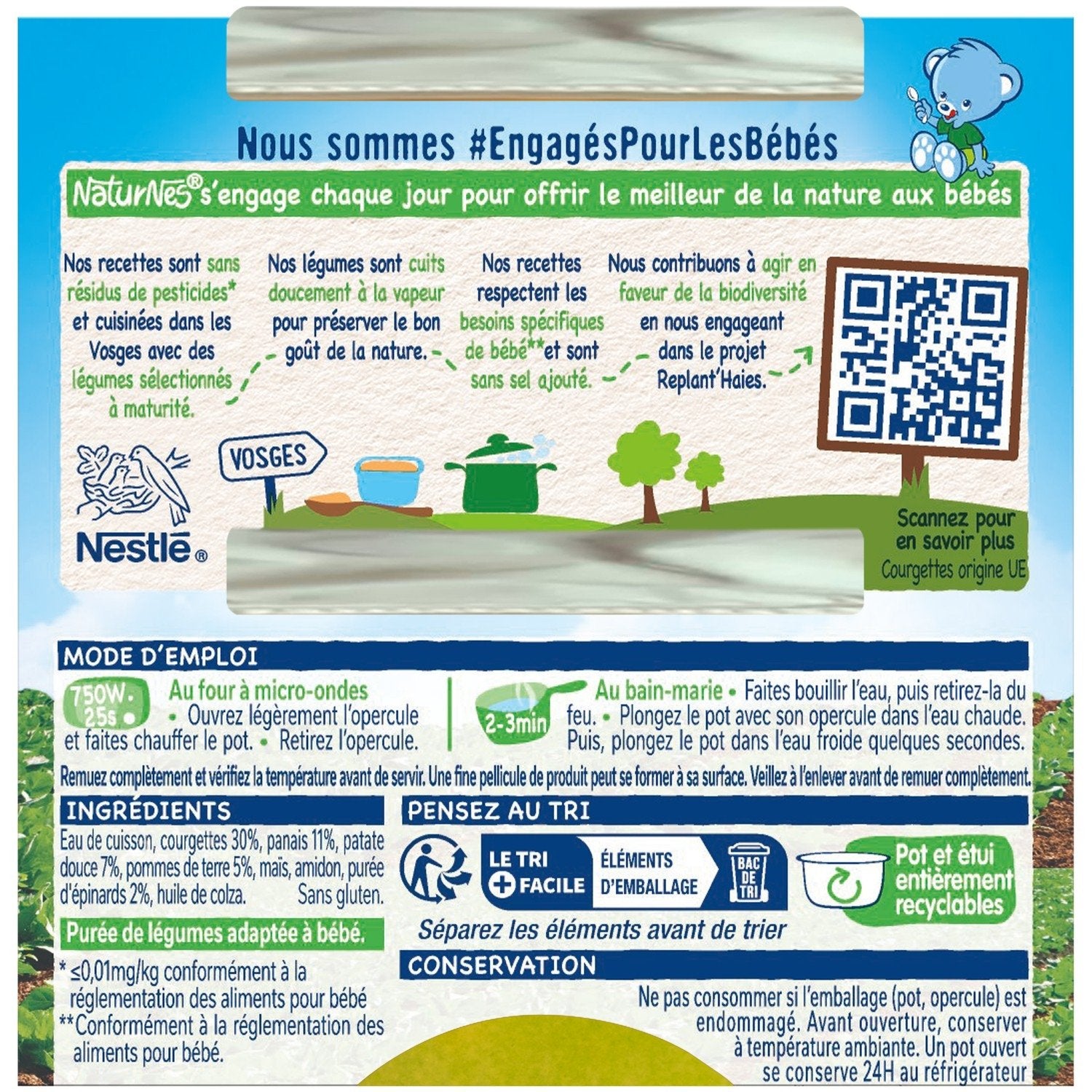 NaturNes® schützt die Natur, um Ihrem Baby das Beste zu bieten. Unser Gemüse wird auf Freilandflächen angebaut und im Einklang mit dem natürlichen Rhythmus reif ausgewählt. Anschließend wird es schonend gedämpft, um die Aromen optimal zu erhalten. Um die Ernährung Ihres Babys abwechslungsreicher zu gestalten, empfehlen wir Ihnen unsere Zucchini-Babygläschen, hergestellt in den Vogesen in Frankreich! Fragen Sie zwischen dem 4. und 6. Monat Ihren Arzt um Rat, wie Sie mit der Abwechslung beginnen können.