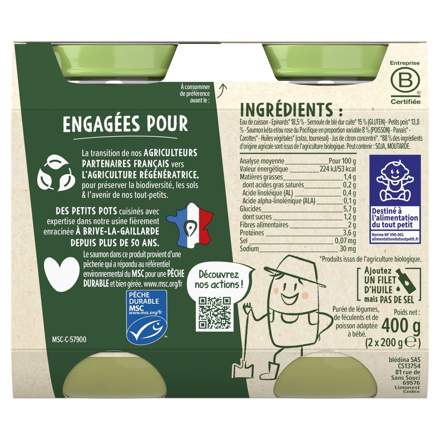 Babygericht ab 6 Monaten Spinat Grieß Lachs Les Récoltes Engagées Blédina BLEDINA