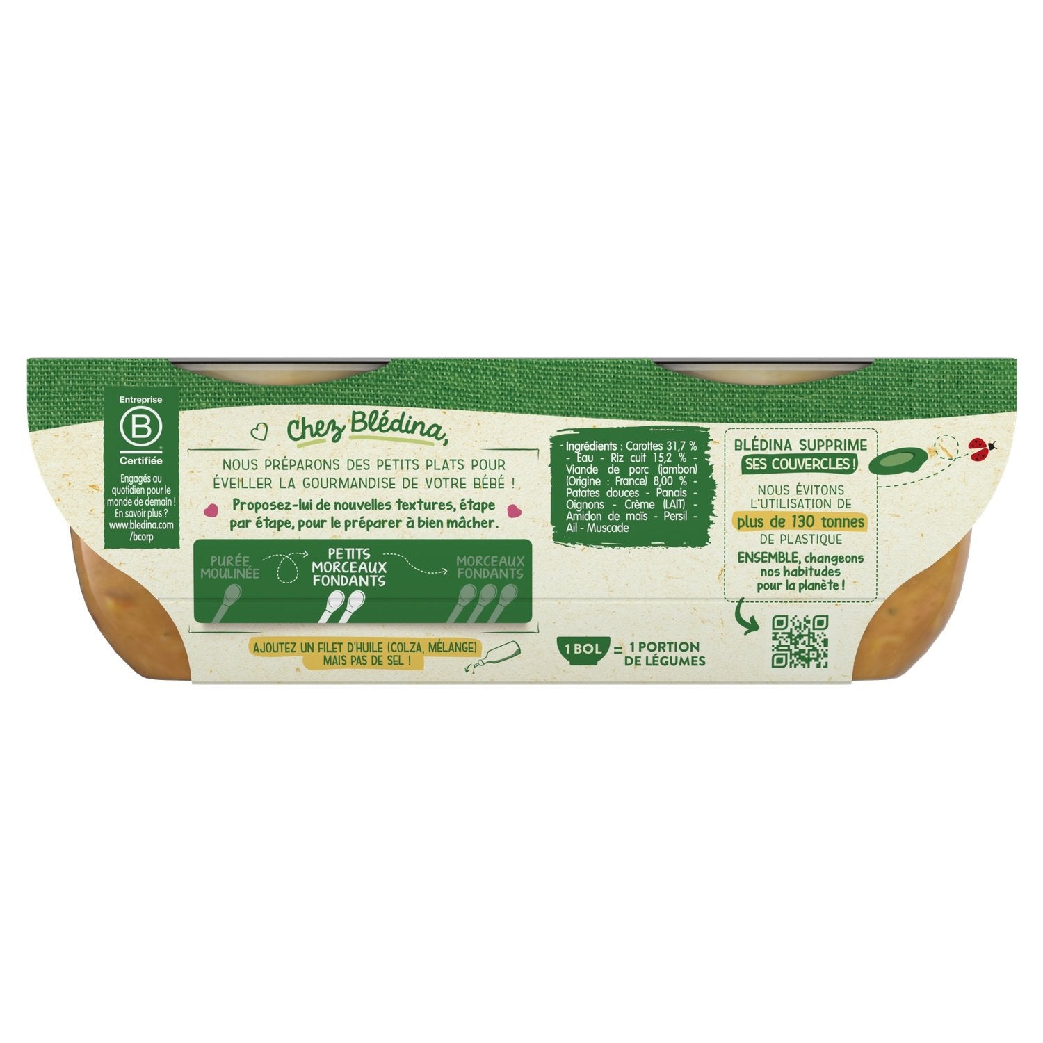 Babygericht ab 8 Monaten Karottenpüree Reis Schinken BLEDINA