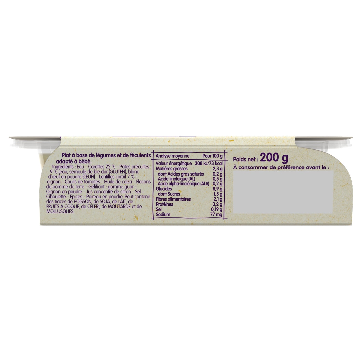 Baby-Abendessen ab 15 Monaten Karotten Korallenlinsen Sternnudeln und Schnittlauchstücke zum Vernaschen BLEDINA