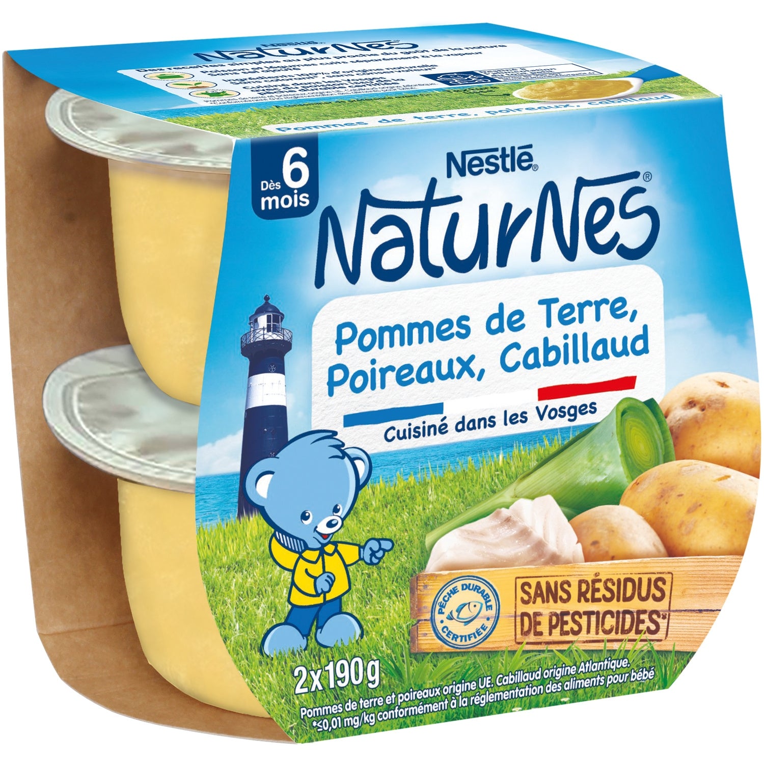 NEU! NaturNes® schützt die Natur, um Babys das Beste zu bieten. Alle unsere Zutaten sind 100 % natürlich, unser Gemüse wird erst am besten ausgewählt und unser Fisch stammt aus zertifizierter nachhaltiger Fischerei. Dank schonender Dampfgarmethode bleiben die Aromen erhalten. Für mehr Abwechslung in der Ernährung Ihres Babys: Unsere Babygläschen ab 6 Monaten mit Kartoffeln, Lauch und Kabeljau, hergestellt in den Vogesen in Frankreich! Kartoffeln und Lauch aus der EU. Kabeljau aus dem Atlantik.