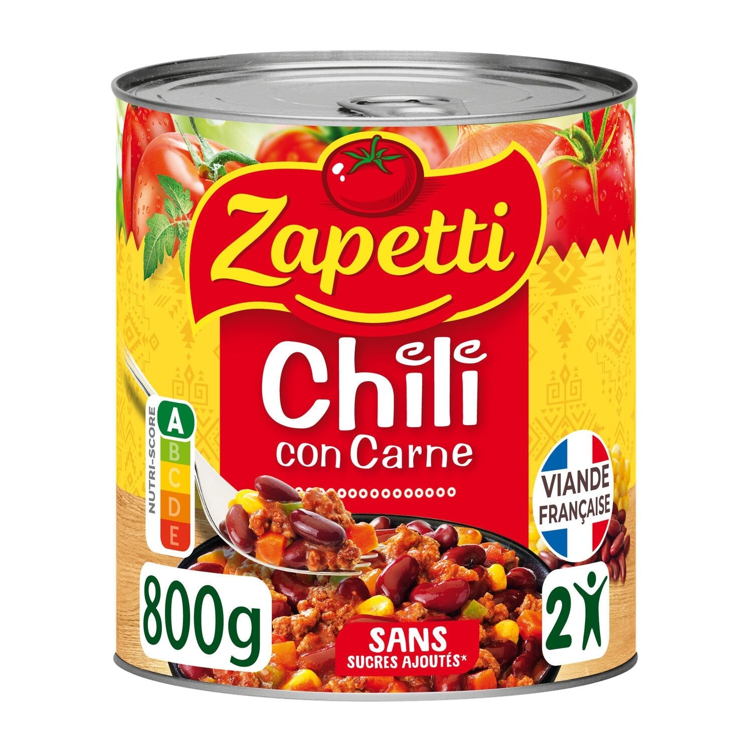 Dieses Chili con Carne besteht zu 100 % aus französischem Rind- und Schweinefleisch, wird mit zartem Gemüse serviert und in einer würzigen Sauce gekocht. Bei Zapetti werden Sie vor Freude erröten, genau wie unsere sonnengereiften und auf dem Feld angebauten Tomaten.