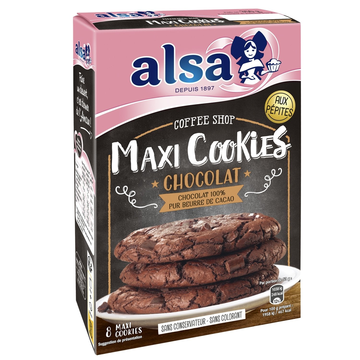 Entdecken Sie alsas neues Produkt: Maxi Chocolate Cookies. Mit alsa können Sie in weniger als 15 Minuten 8 superleckere Maxi-Cookies mit 100 % reiner Kakaobutterschokolade backen!