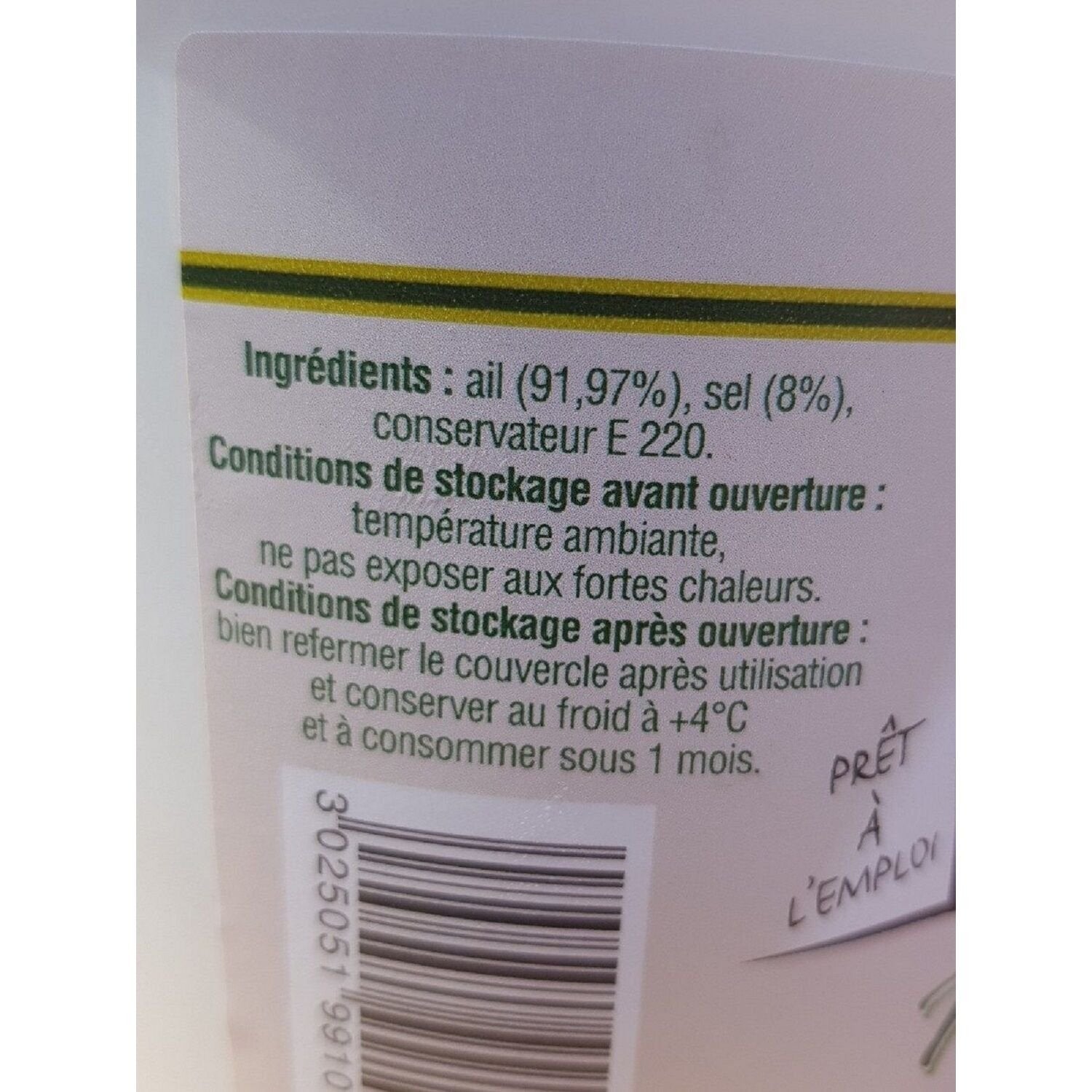 Knoblauch (91, 97%), Salz (8%), Konservierungsstoff E220.