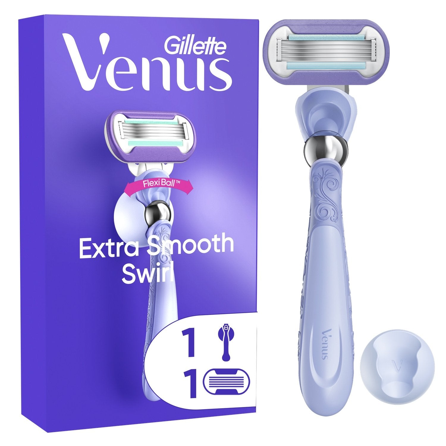 Gillette Venus Extra Smooth Swirl Damenrasierer, 1 Griff + 1 Klingennachfüllung, wiederverwendbarer Drehgriff und Duschhalter