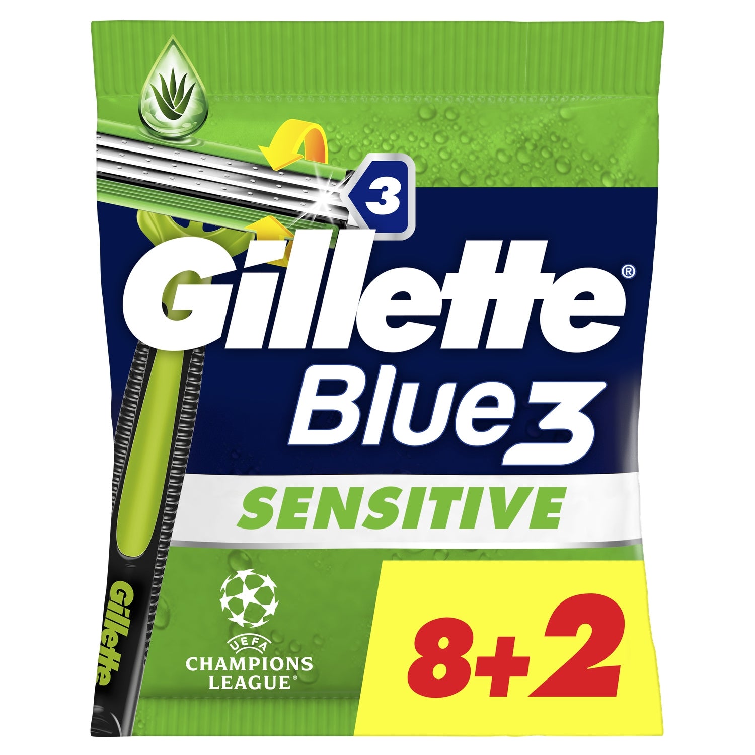 Gillette Blue3 Sensitive Einwegrasierer für Herren X10, 3-Klingen, 40° schwenkbarer Kopf, Gleitstreifen, mit Comfortgel-Technologie