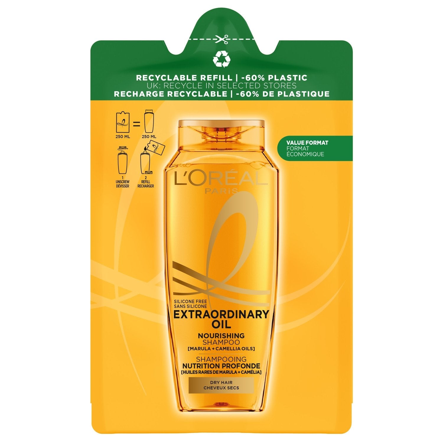L'Oréal Paris Elseve Huile Extraordinaire Öko-Nachfüllshampoo für nährende Ausstrahlung, seltene Öle aus Marula und Kamelie, 250 ml