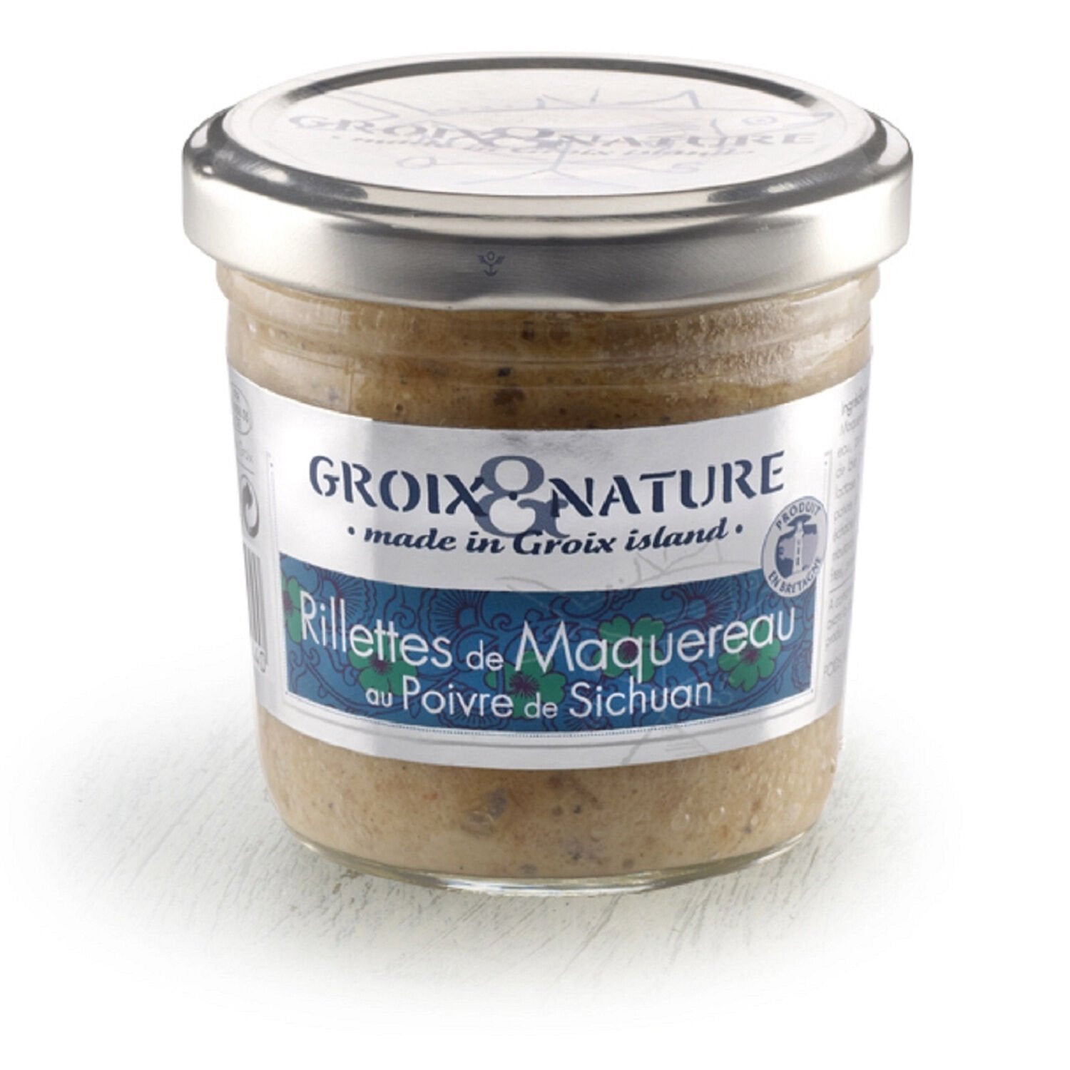 MAKRELE-RILLETTES MIT PFEFFERMakrele* 56,5 % - flüssige Sahne - Wasser - Zitronenpüree (Zitrone 84 % - Invertzuckersirup 16 %) - Weizenmehl - MILCHproteine und Laktose - Salz - Zitronenschale - Sichuan-Pfeffer 0,2 % - Schalotten - Piment d'Espelette - Knoblauch*Scomber scombrus, Herkunft Nordostatlantik