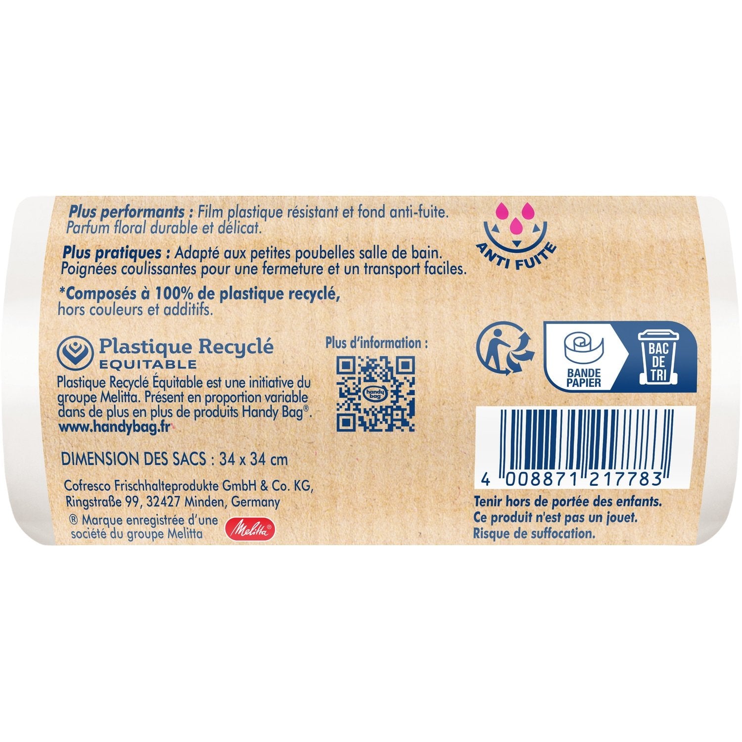 Badezimmer-Müllbeutel mit Schiebegriffen, Blumenduft, 5 l x 20, 100 % recycelter Kunststoff, Handy Bag